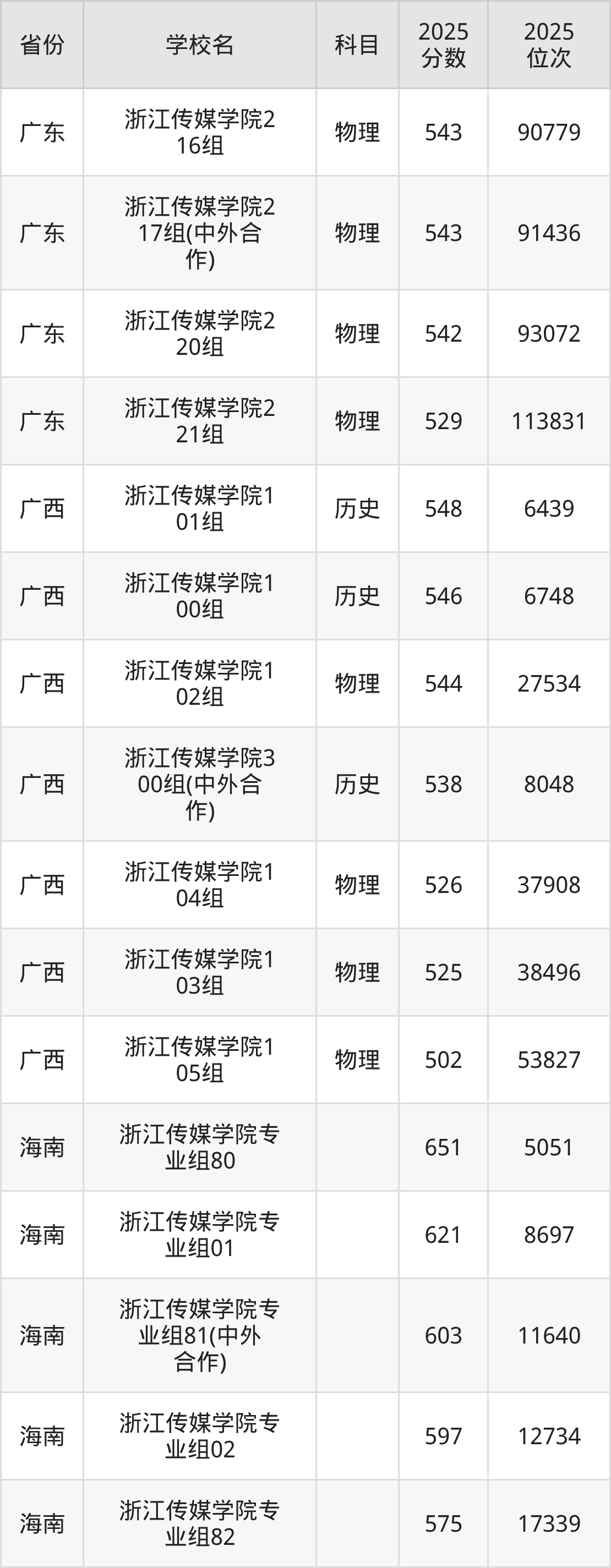 2025年浙江传媒学院最低分544分(119137名)。