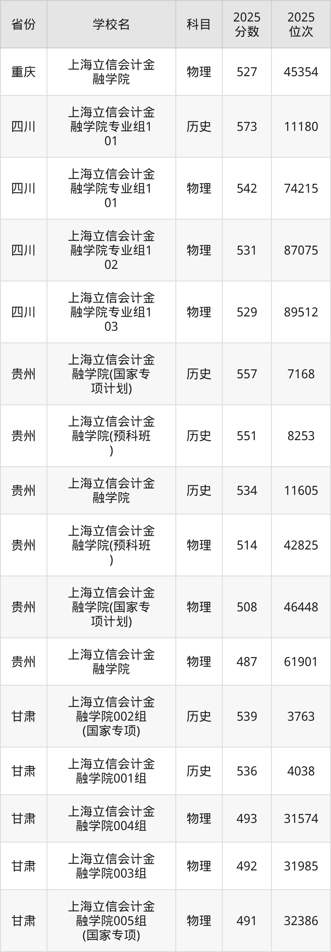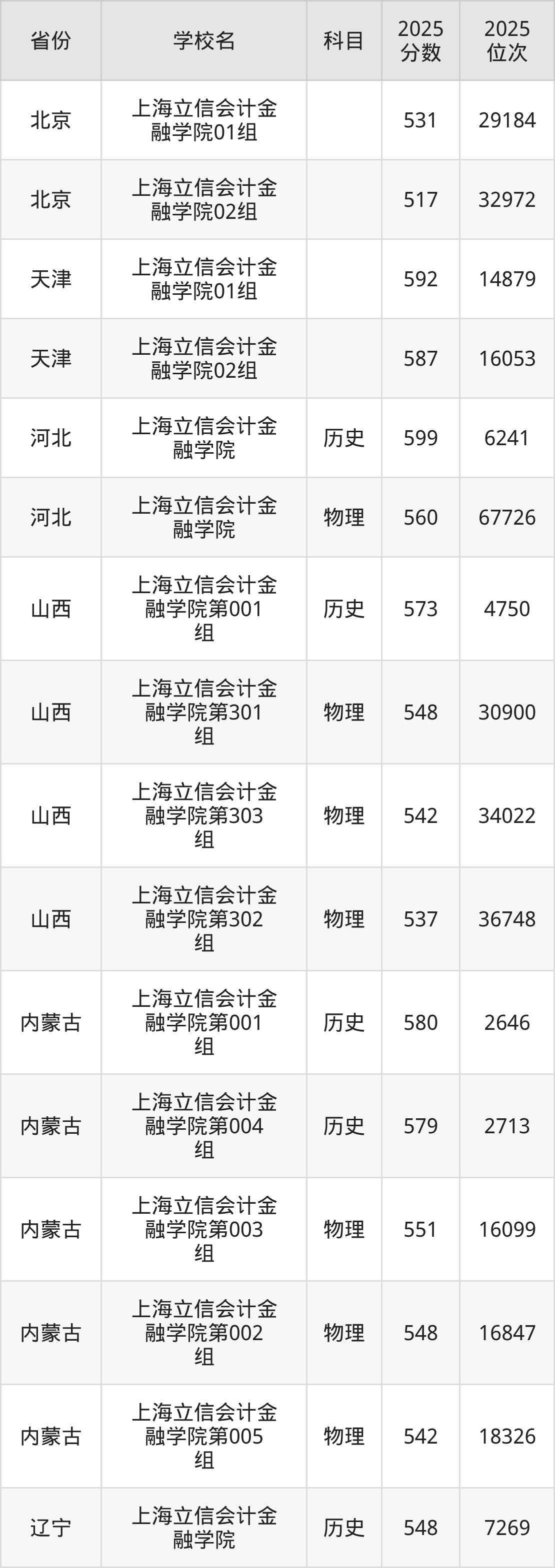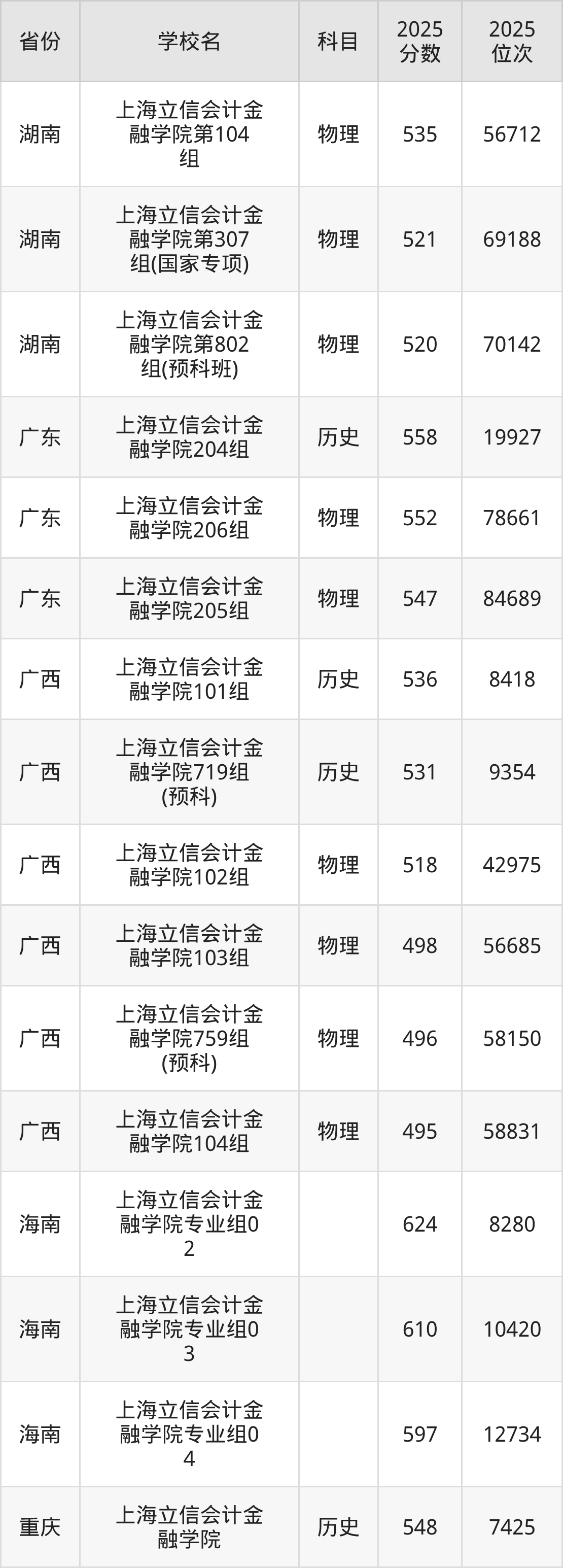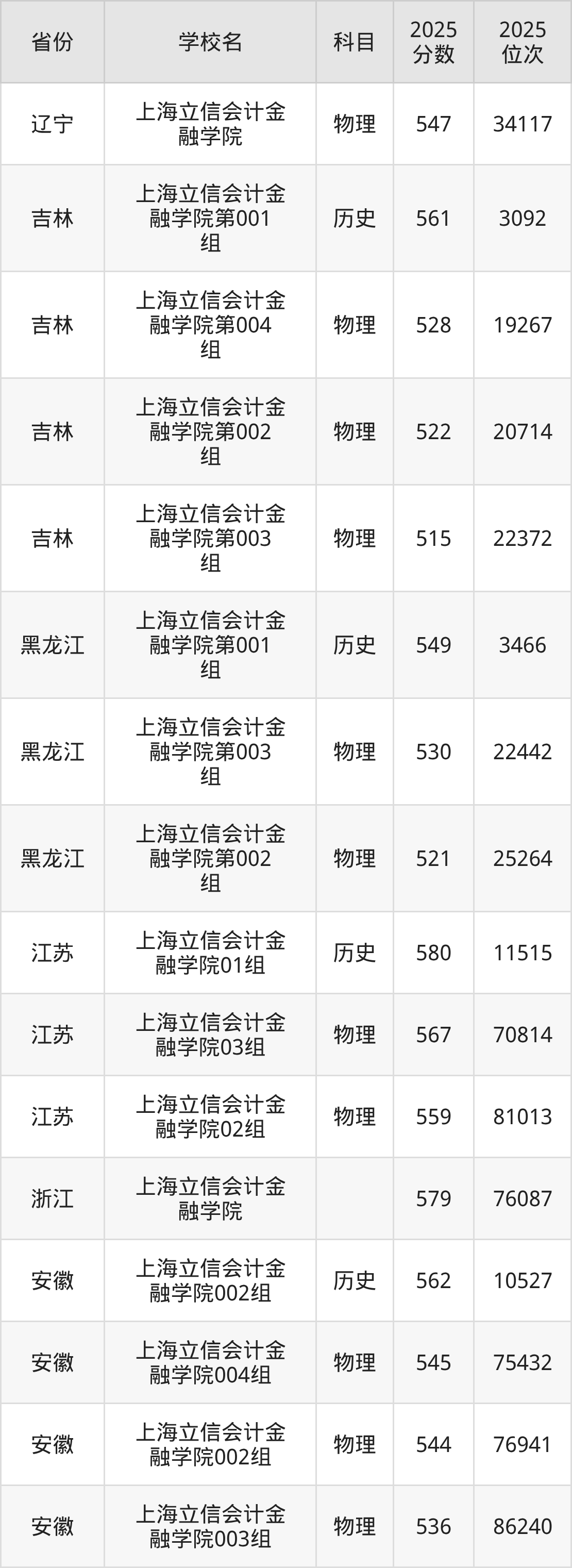 下面是上海立信会计金融学院2025年录取分数线各省汇总,一起来了解下吧。