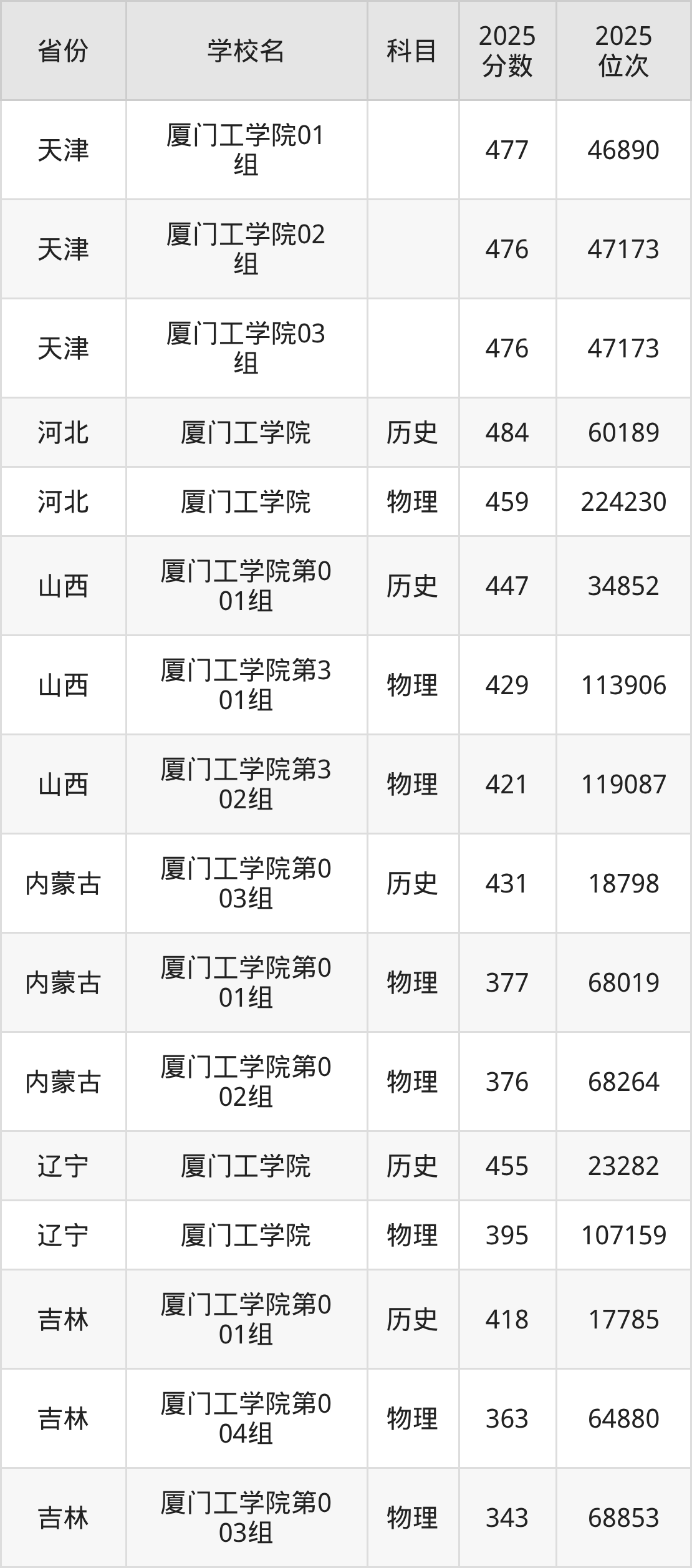 下面是厦门工学院2025年录取分数线各省汇总,一起来了解下吧。