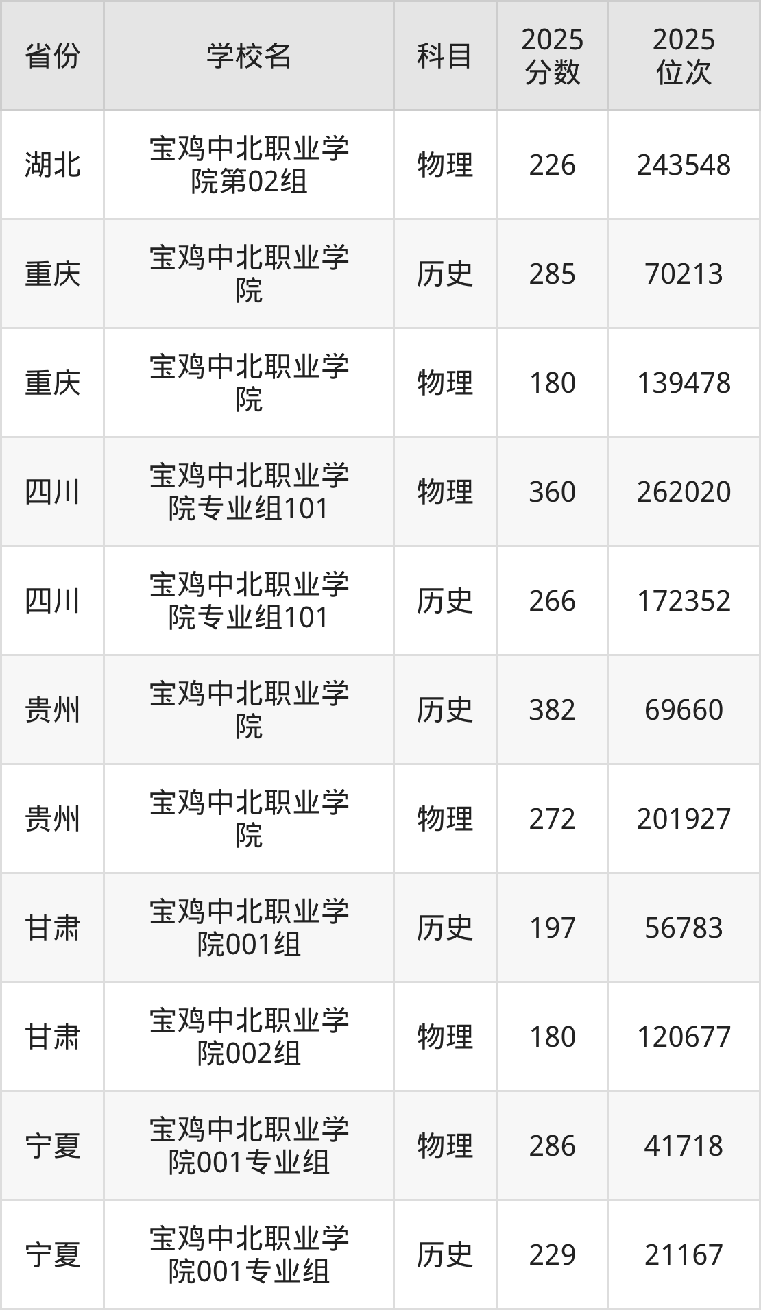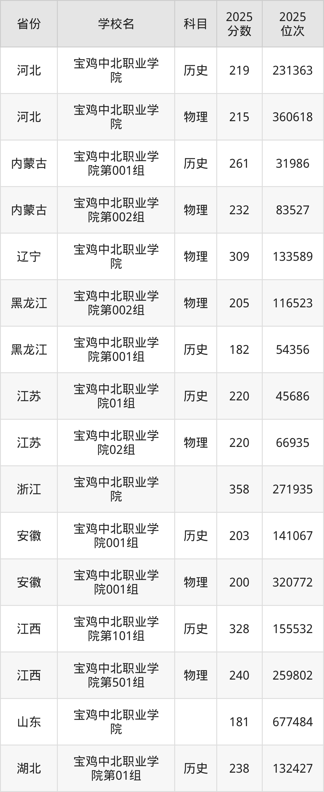 下面是宝鸡中北职业学院2025年录取分数线各省汇总,一起来了解下吧。