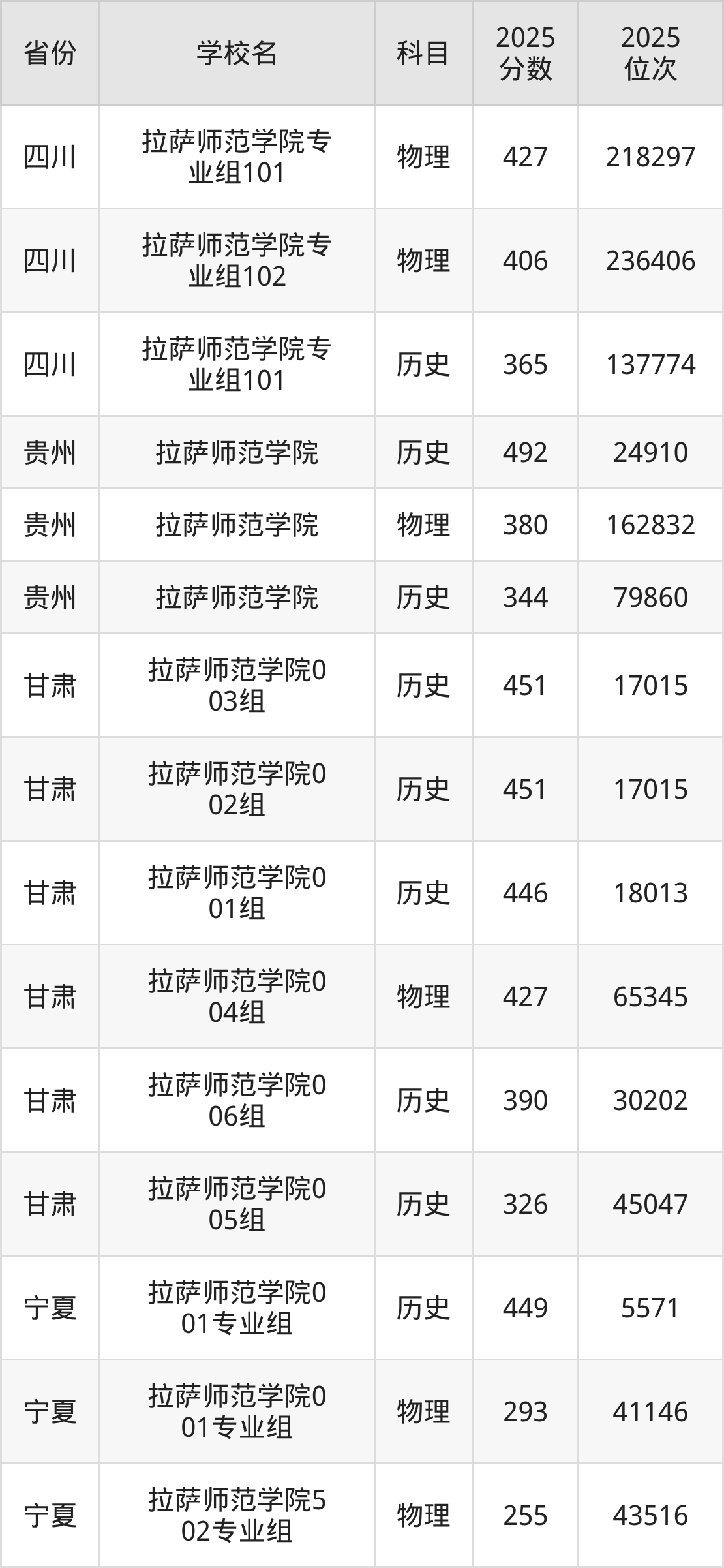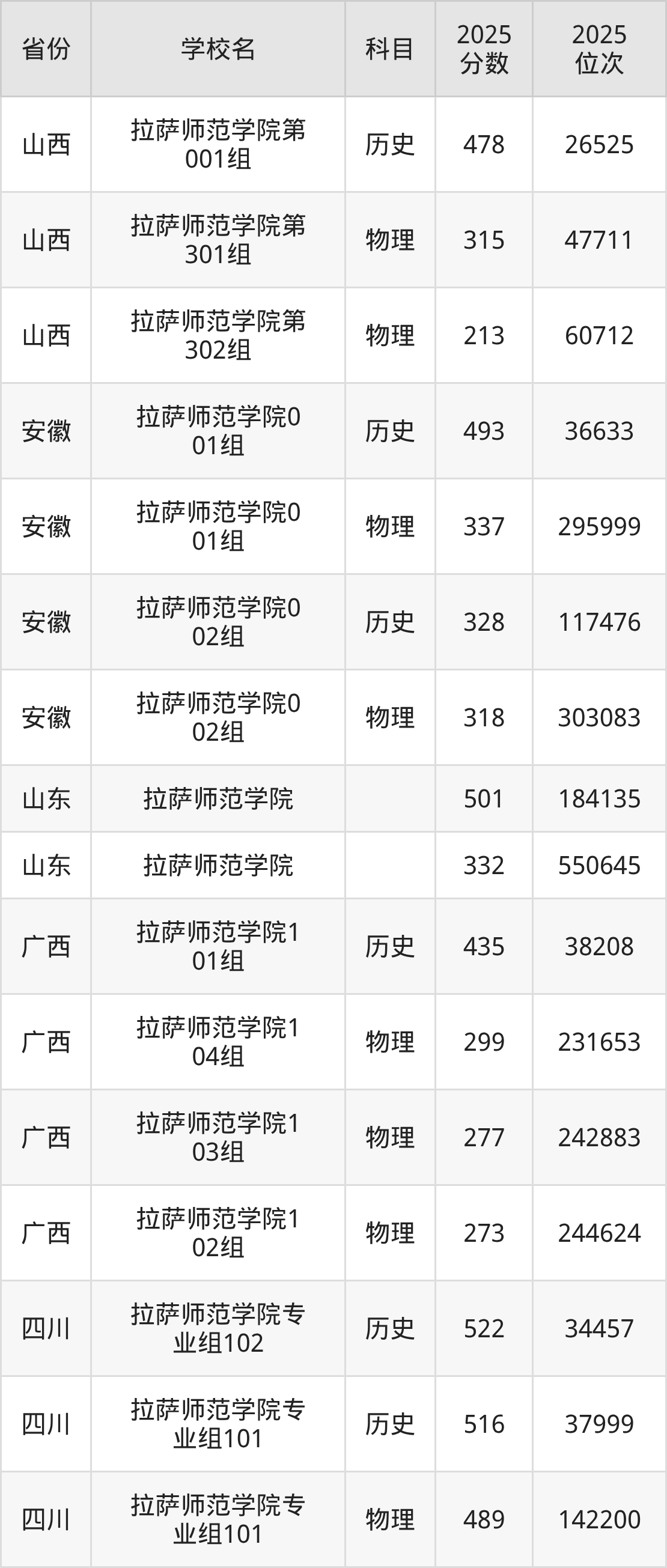下面是拉萨师范学院2025年录取分数线各省汇总,一起来了解下吧。