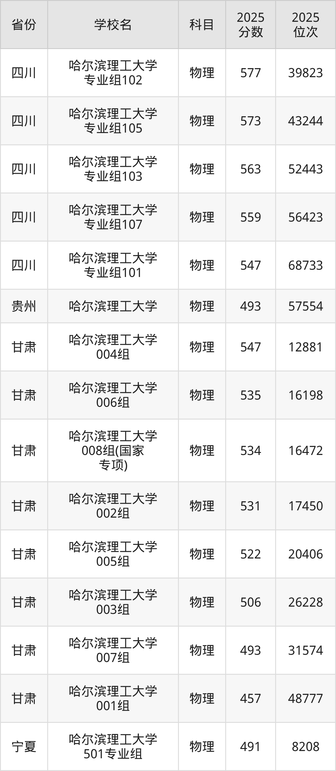 | 哈尔滨理工大学 第011组(地 方专项) | 物理 | 449 | 50394 |