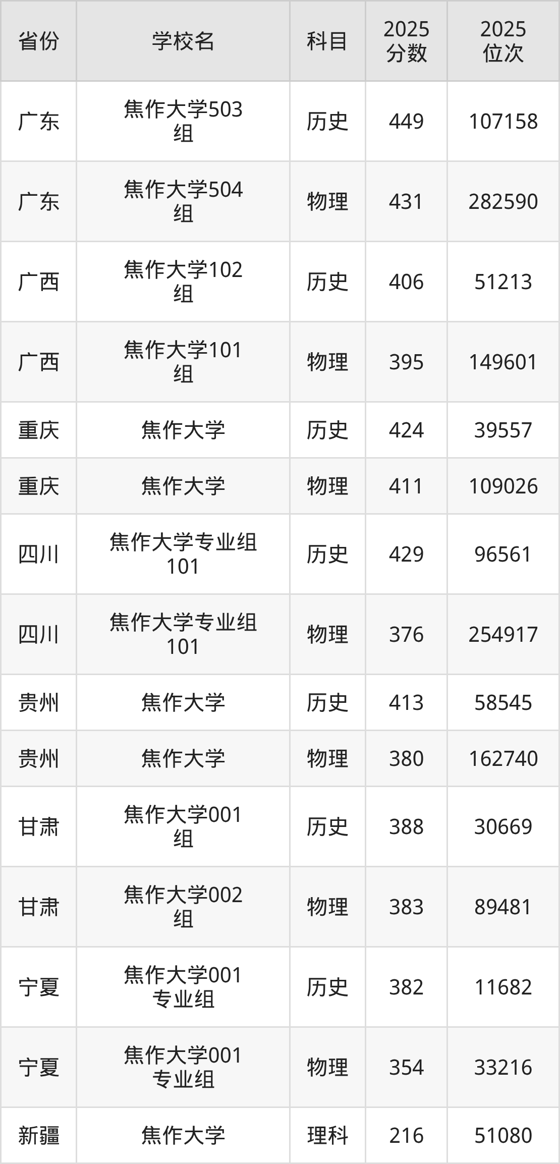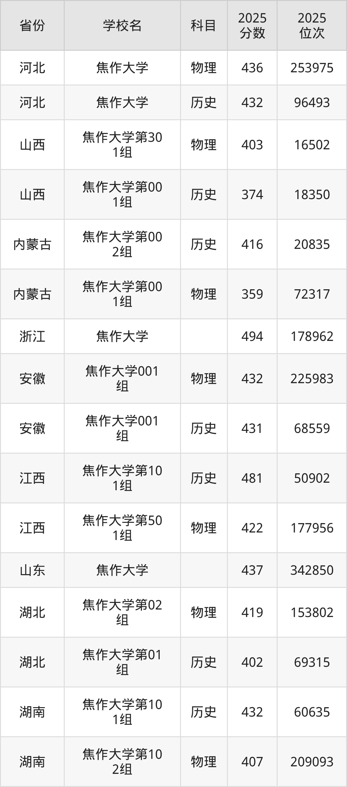 下面是焦作大学2025年录取分数线各省汇总,一起来了解下吧。