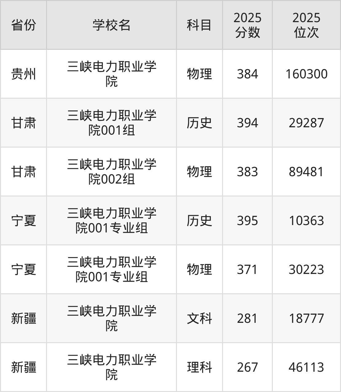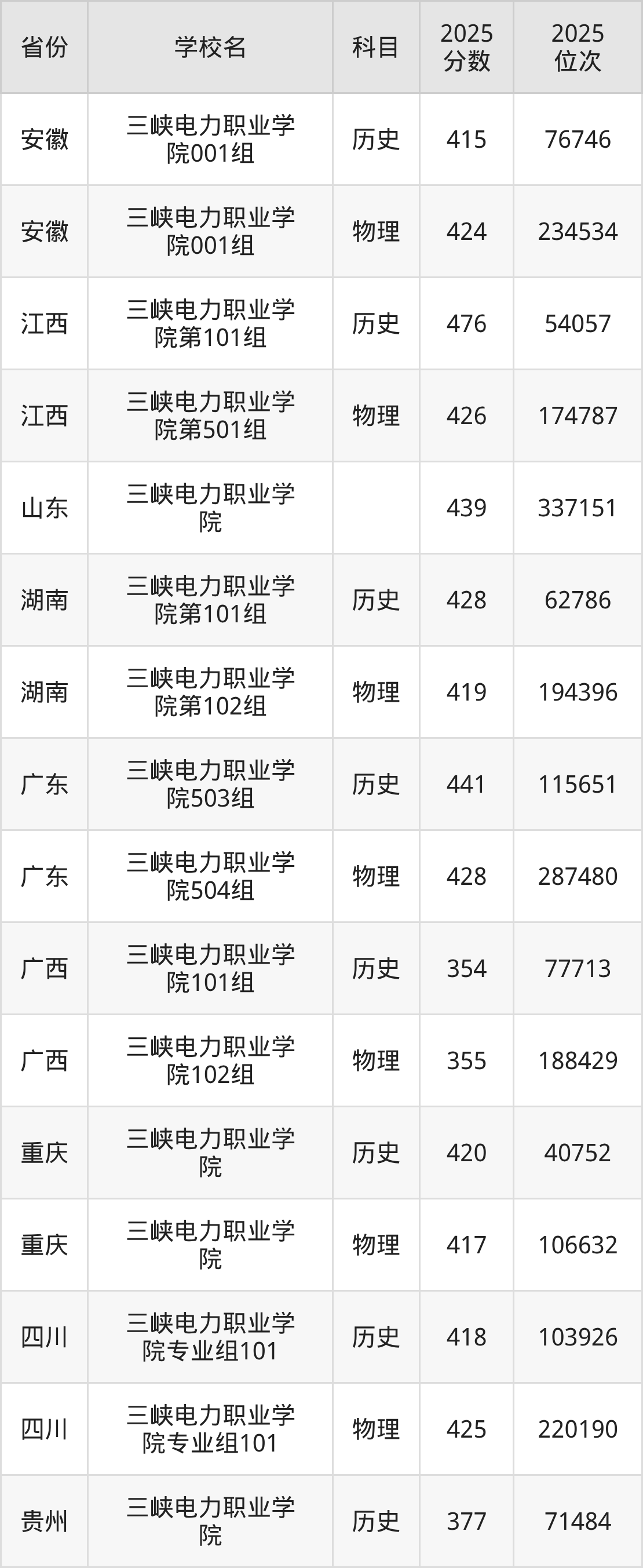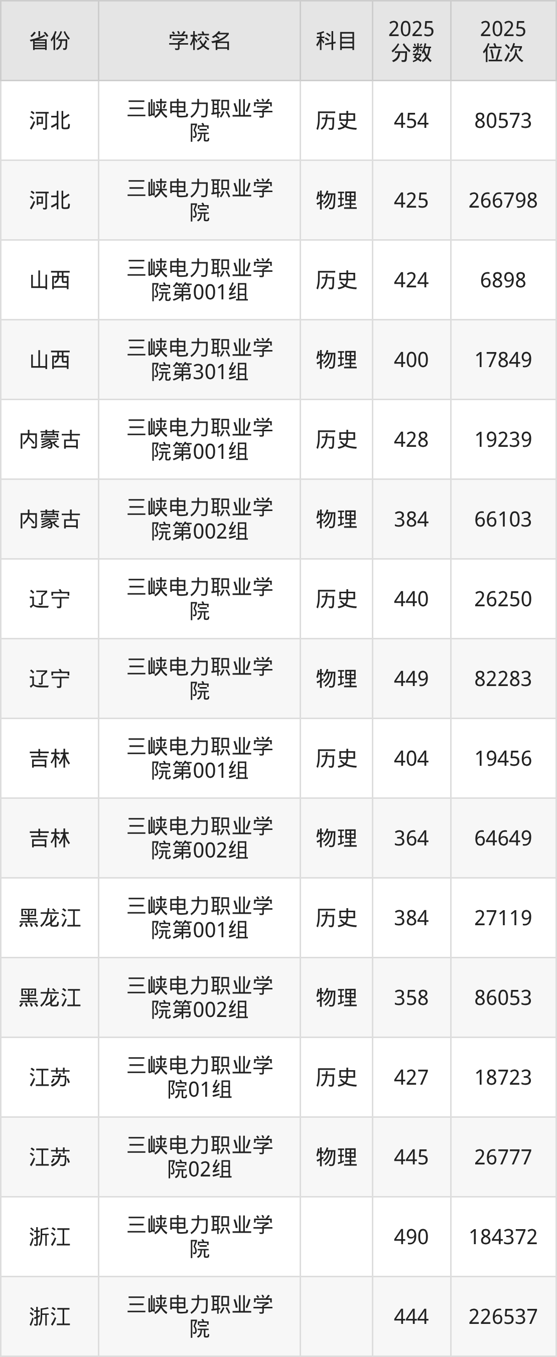 2025年三峡电力职业学院历史类最低分404分(68403名)、物理类最低分410分(160172名)。