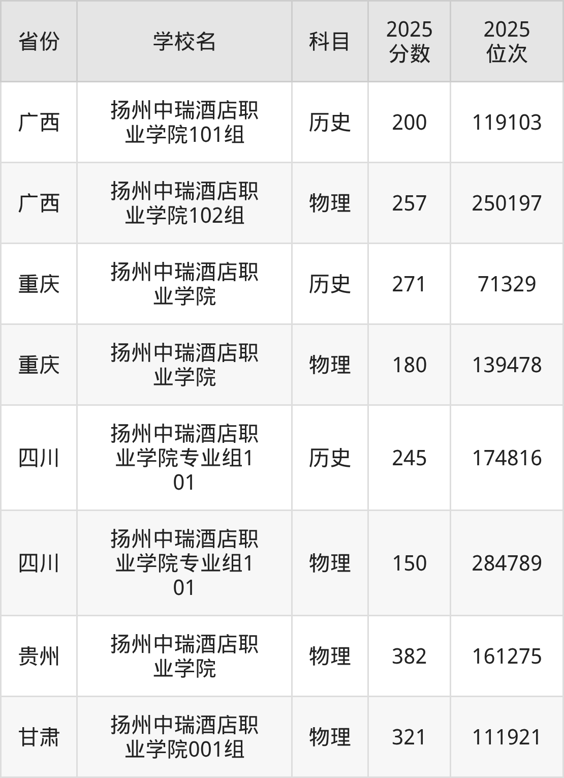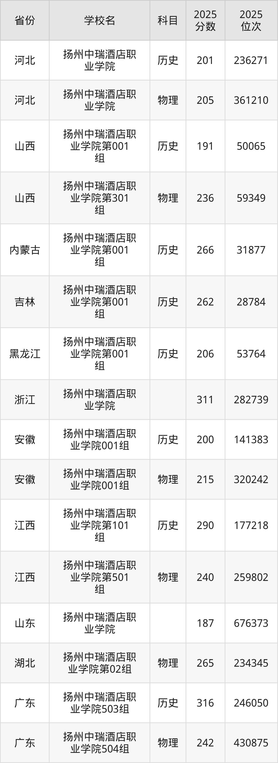 下面是扬州中瑞酒店职业学院2025年录取分数线各省汇总,一起来了解下吧。