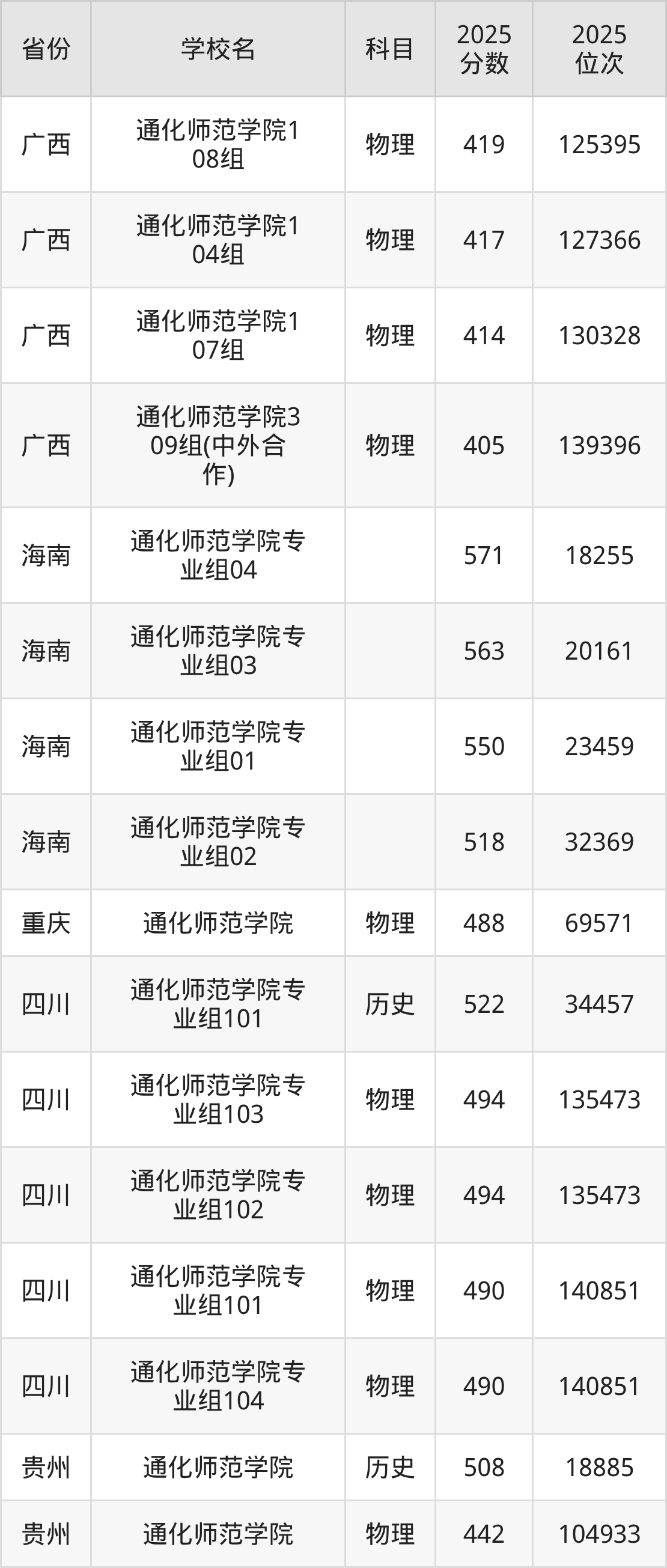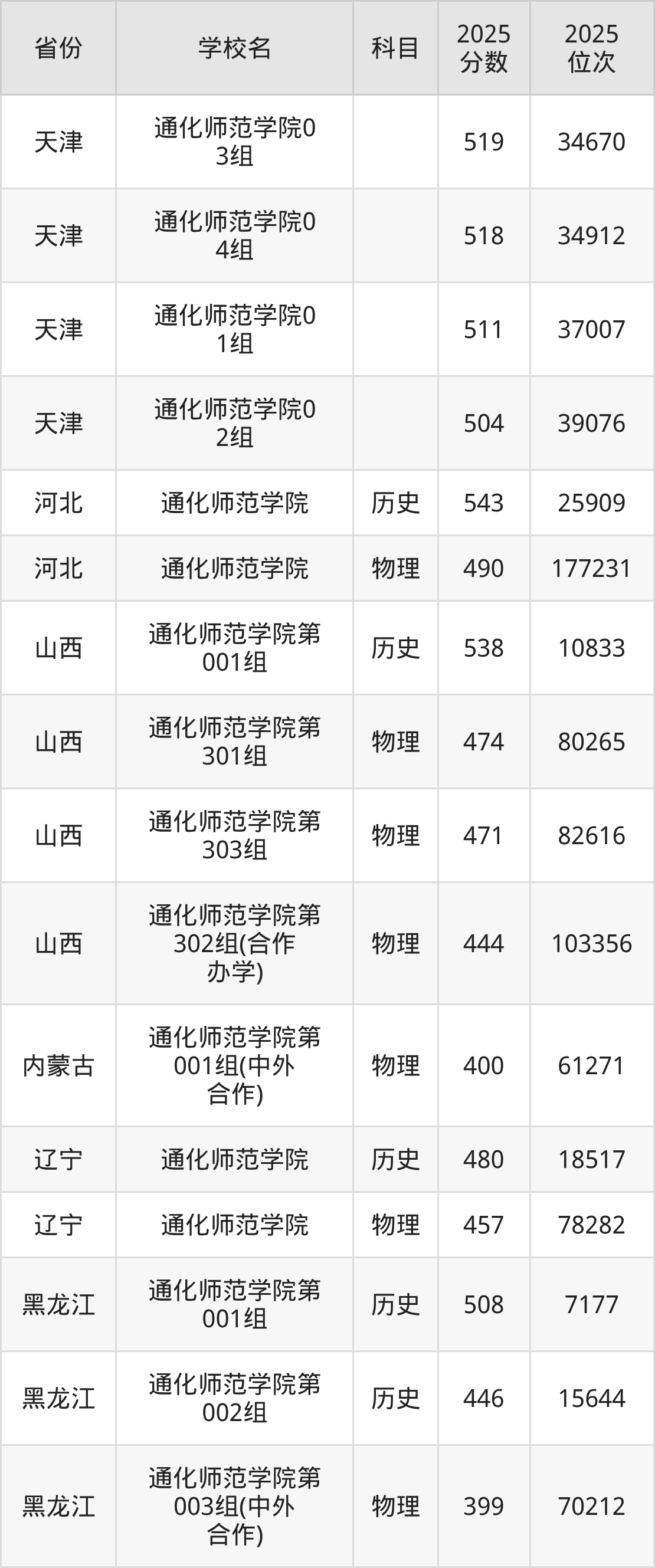2025年通化师范学院历史类最低分467分(11880名)、物理类最低分397分(56221名)。