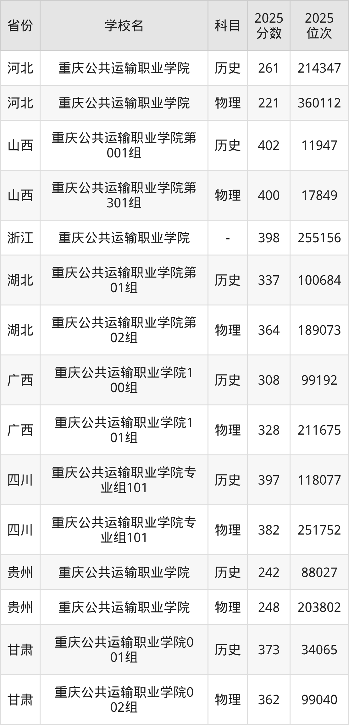 下面是重庆公共运输职业学院2025年录取分数线各省汇总,一起来了解下吧。