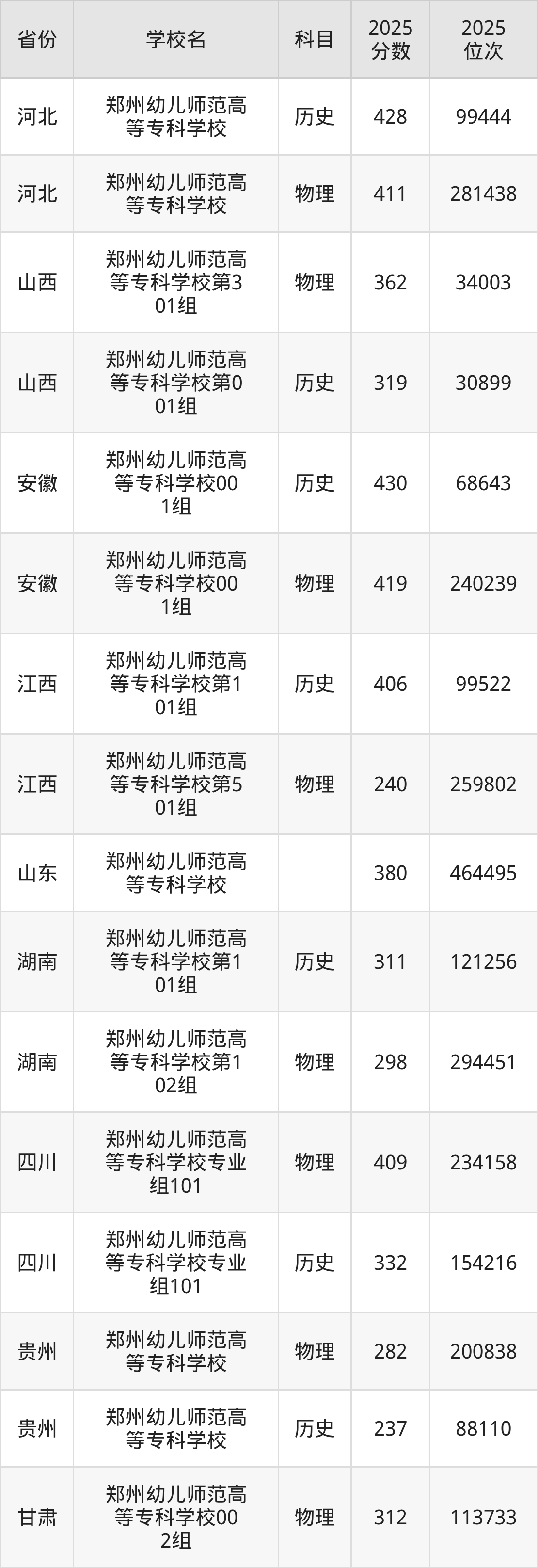 下面是郑州幼儿师范高等专科学校2025年录取分数线各省汇总,一起来了解下吧。