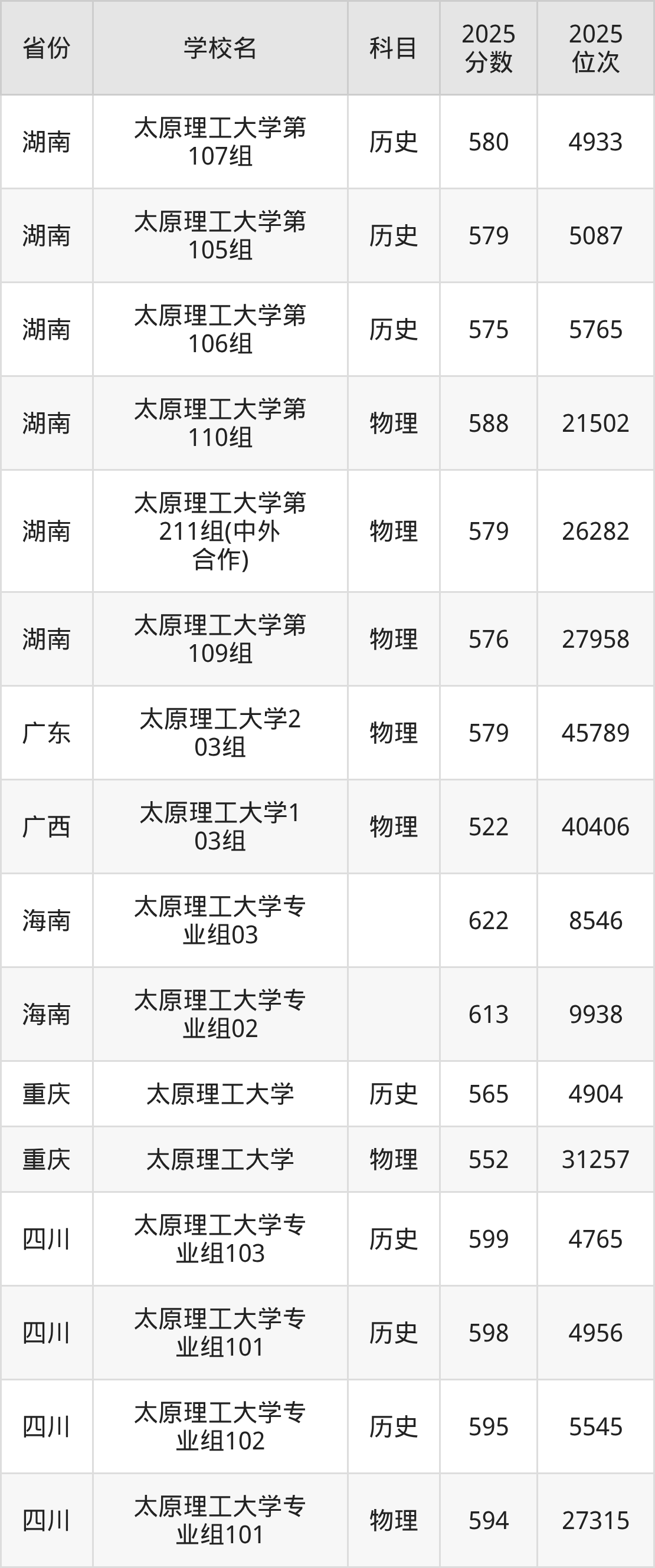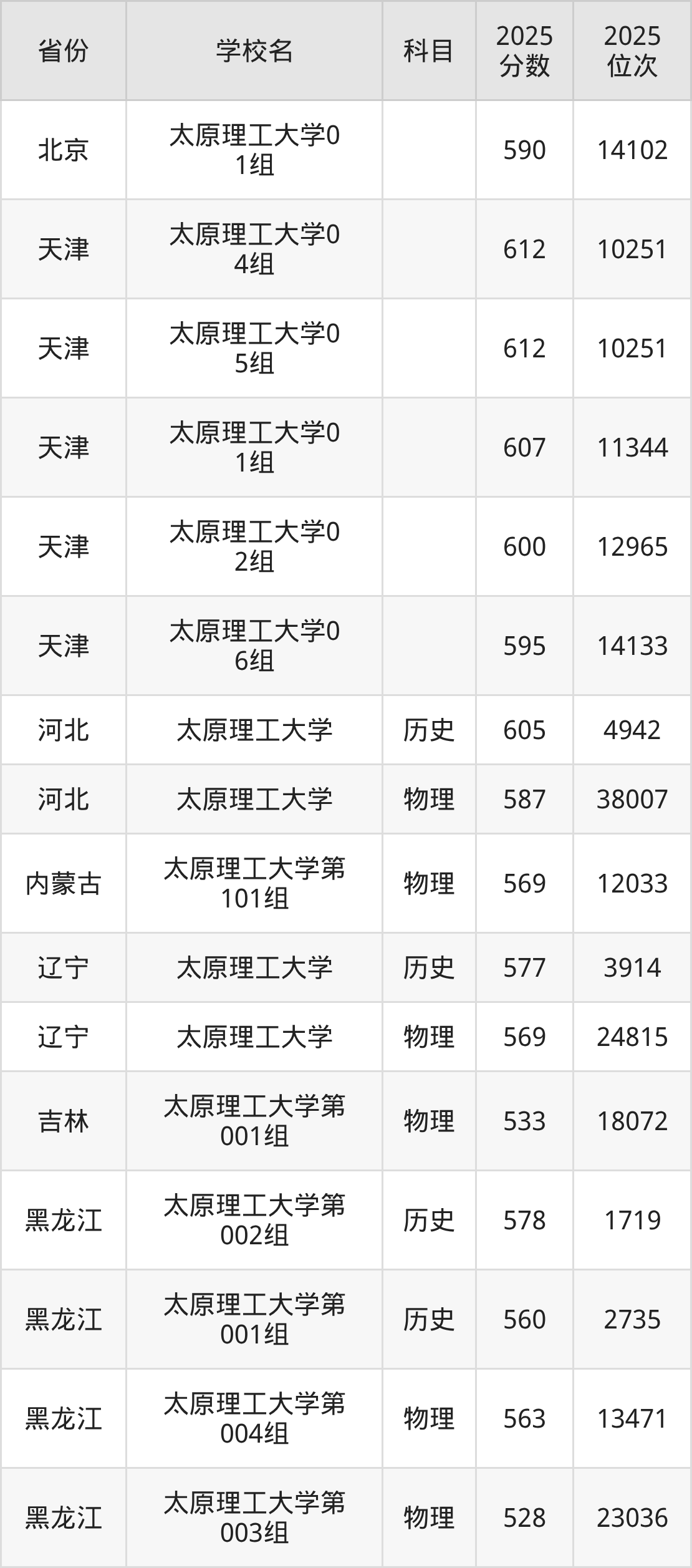 下面是太原理工大学2025年录取分数线各省汇总,一起来了解下吧。