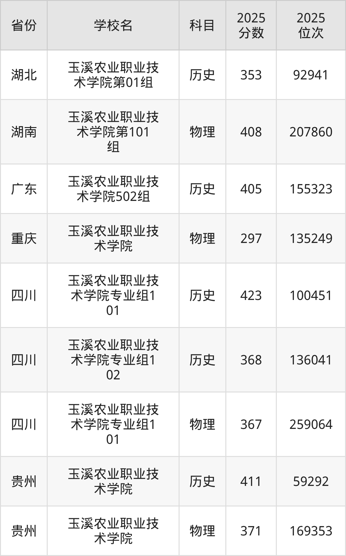 下面是玉溪农业职业技术学院2025年录取分数线各省汇总,一起来了解下吧。