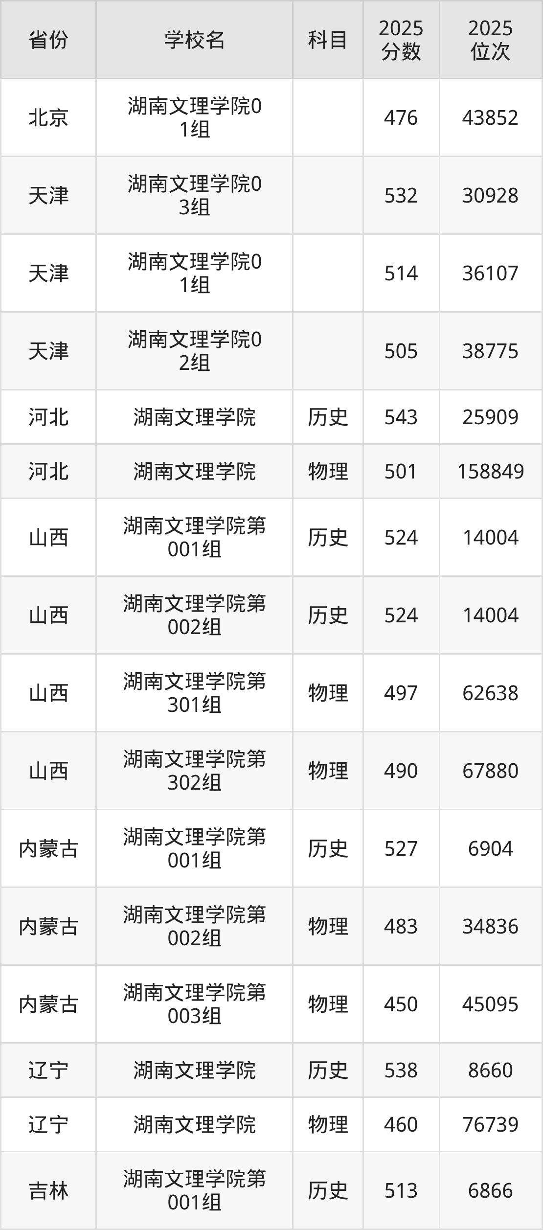 2025年湖南文理学院历史类最低分442分(55250名)、物理类最低分401分(216011名)。
