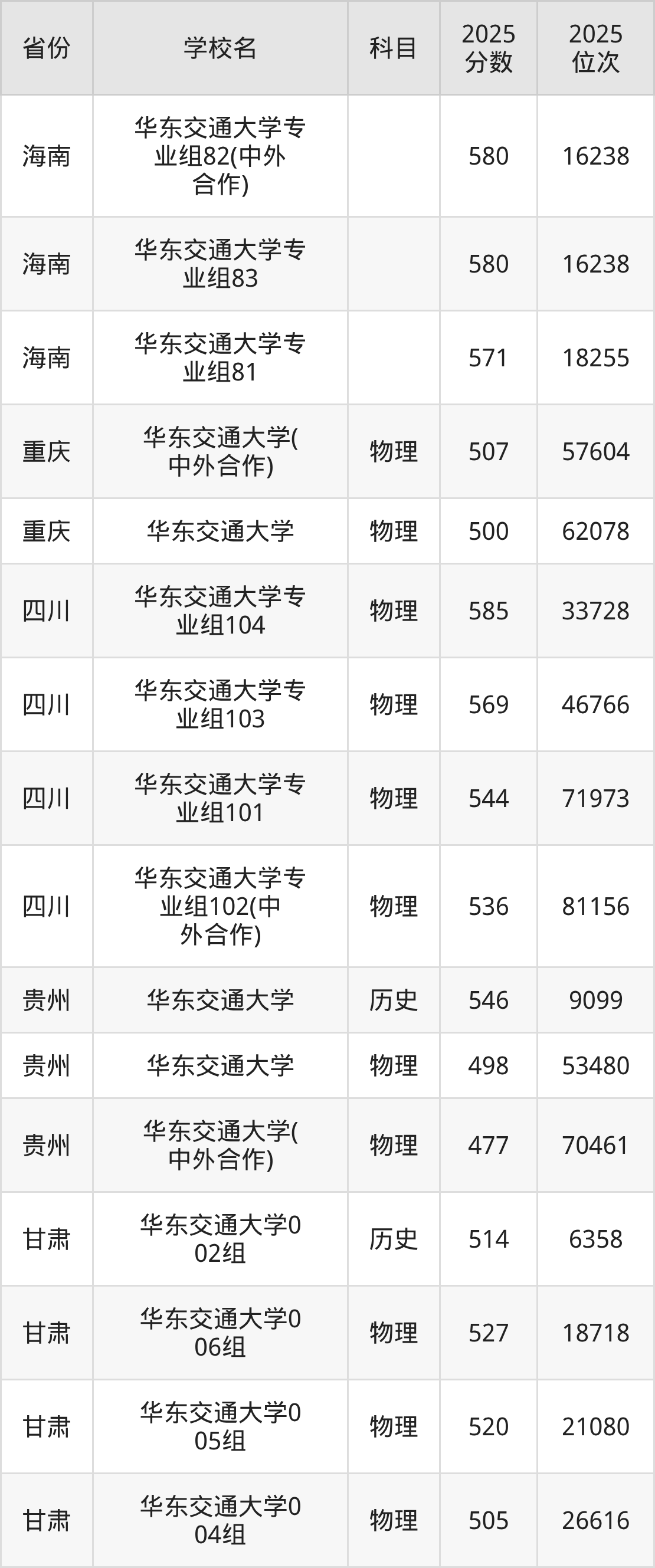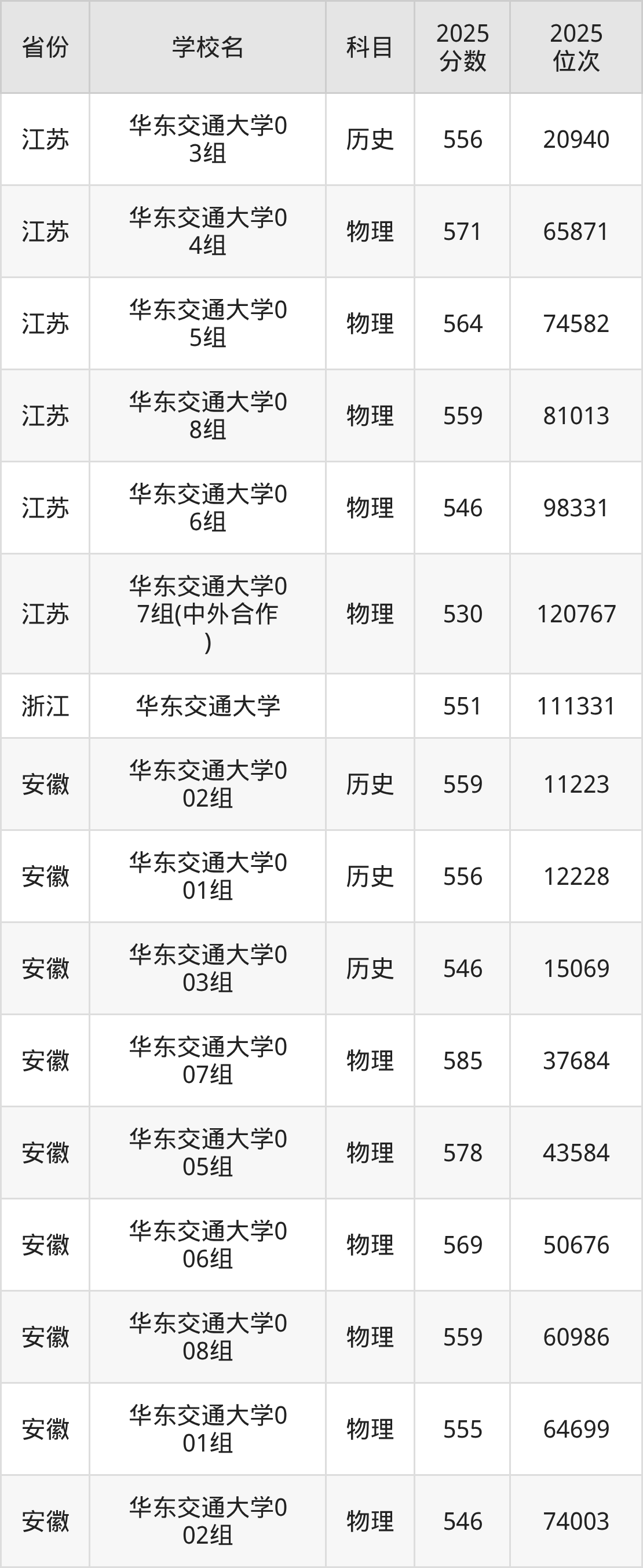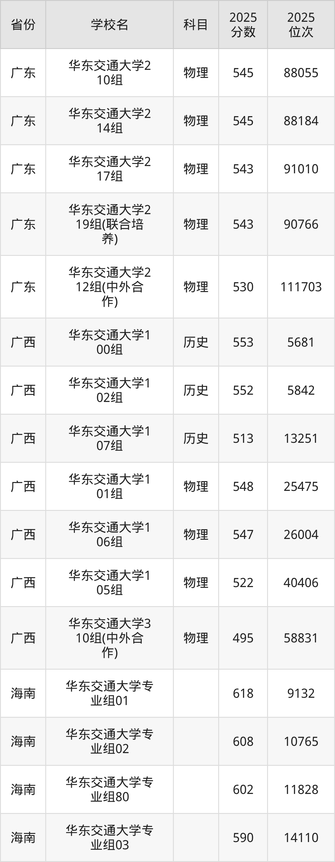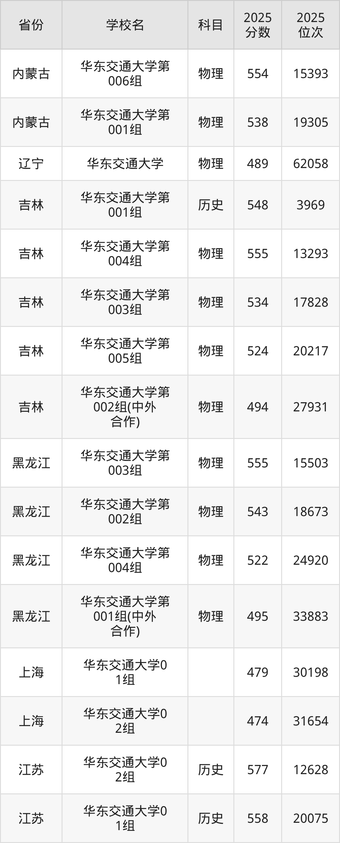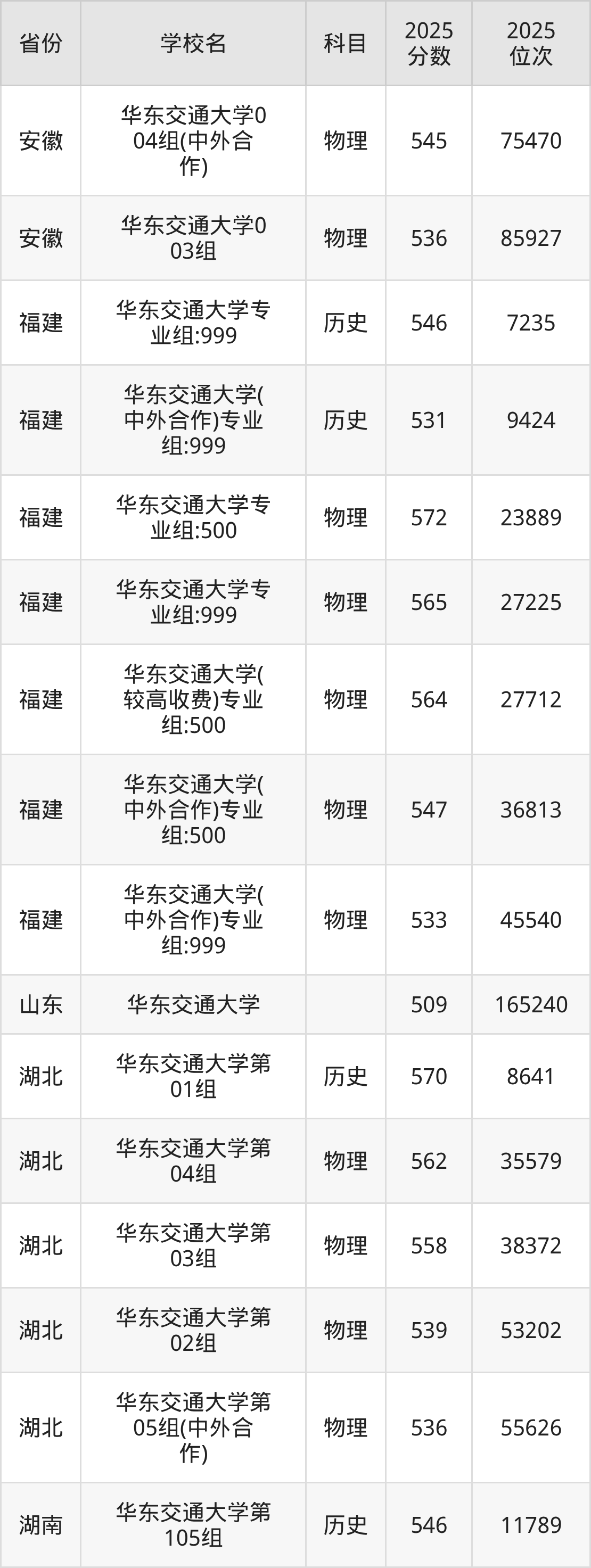 | 华东交通大学第 573组(地方 专项) | 物理 | 548 | 36116 |