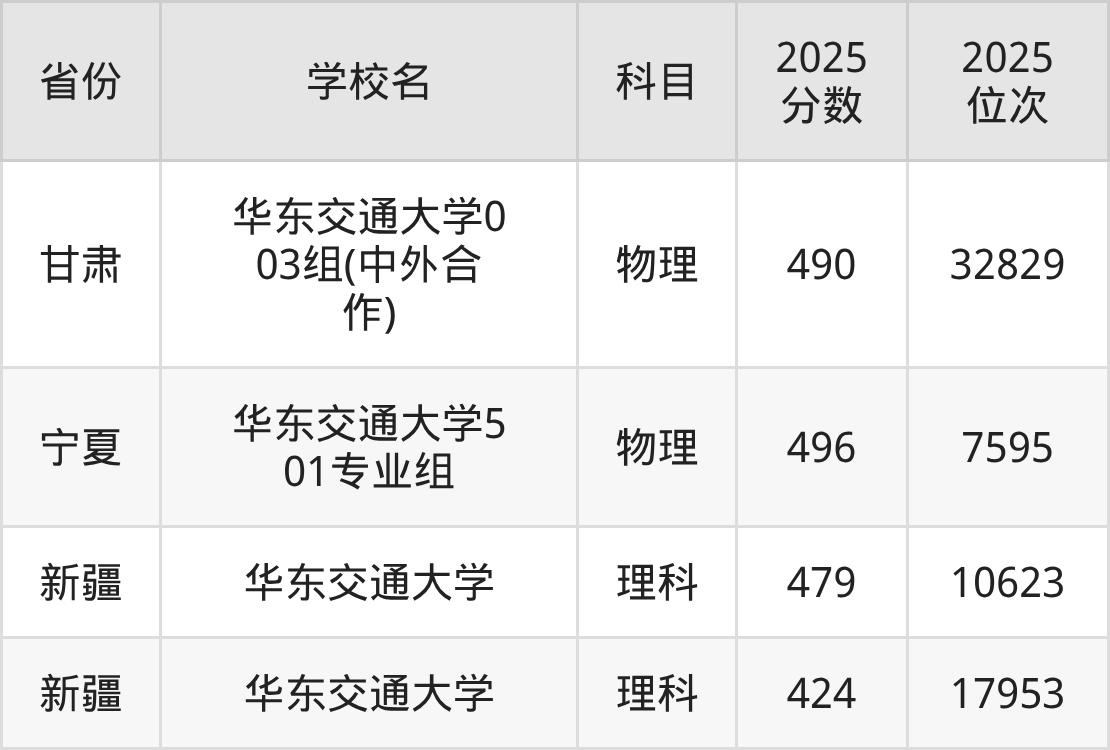 2026年华东交通大学录取分数线预计在540分及以上,在各省录取最低分存在一定差异,如:2025年华东交通大学在重庆录取最低物理类500分,在四川录取最低物理类536分,在新疆录取最低理科424分。
