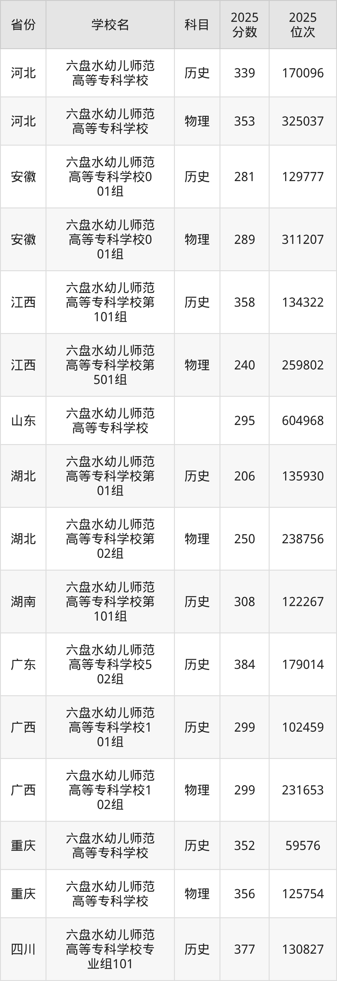 下面是六盘水幼儿师范高等专科学校2025年录取分数线各省汇总,一起来了解下吧。