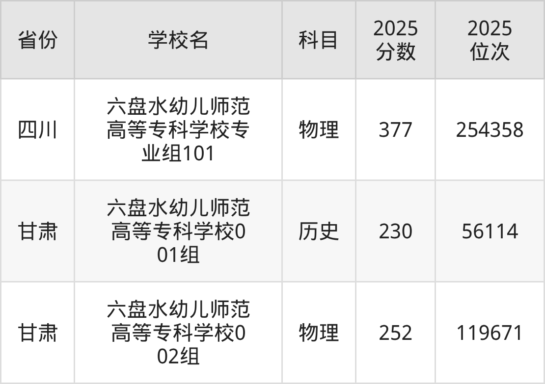| 六盘水幼儿师范 高等专科学校 | 历史 | 225 | 88229 |