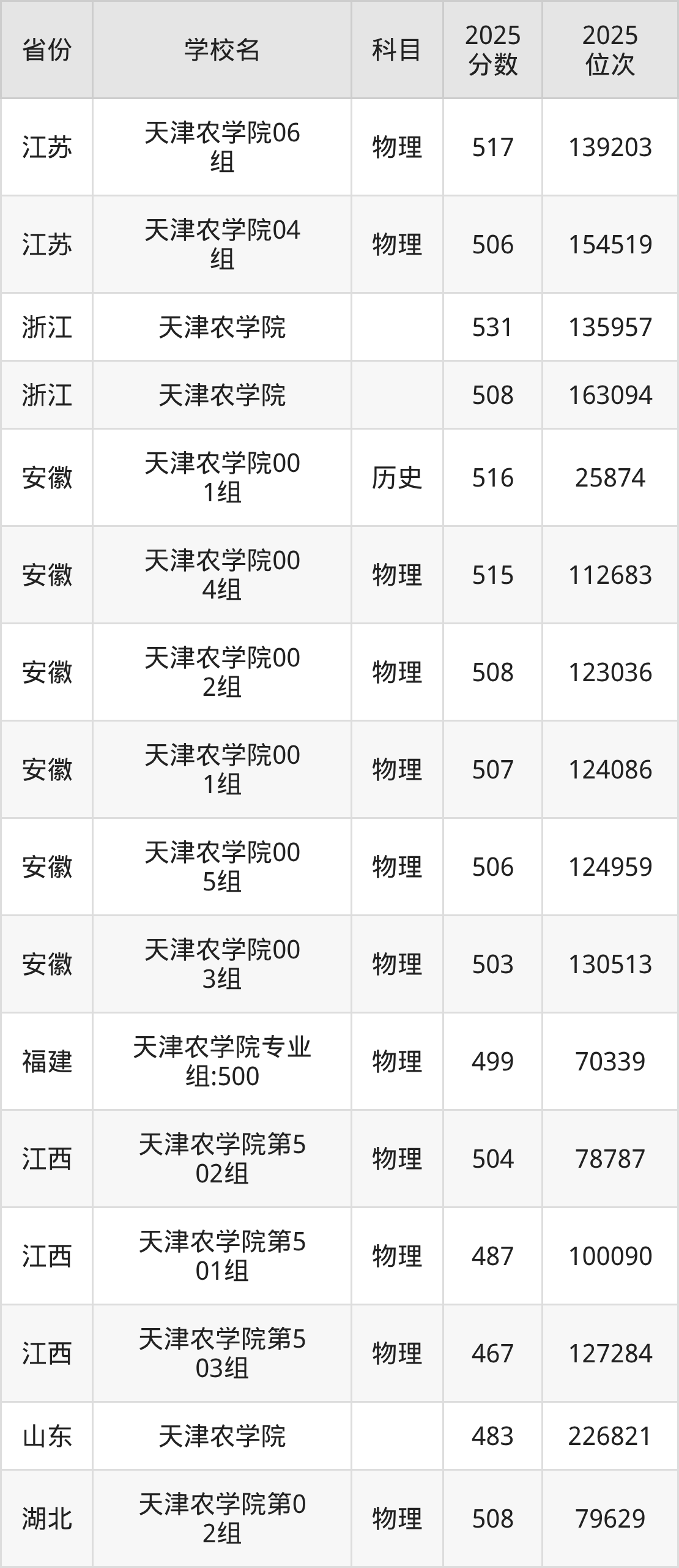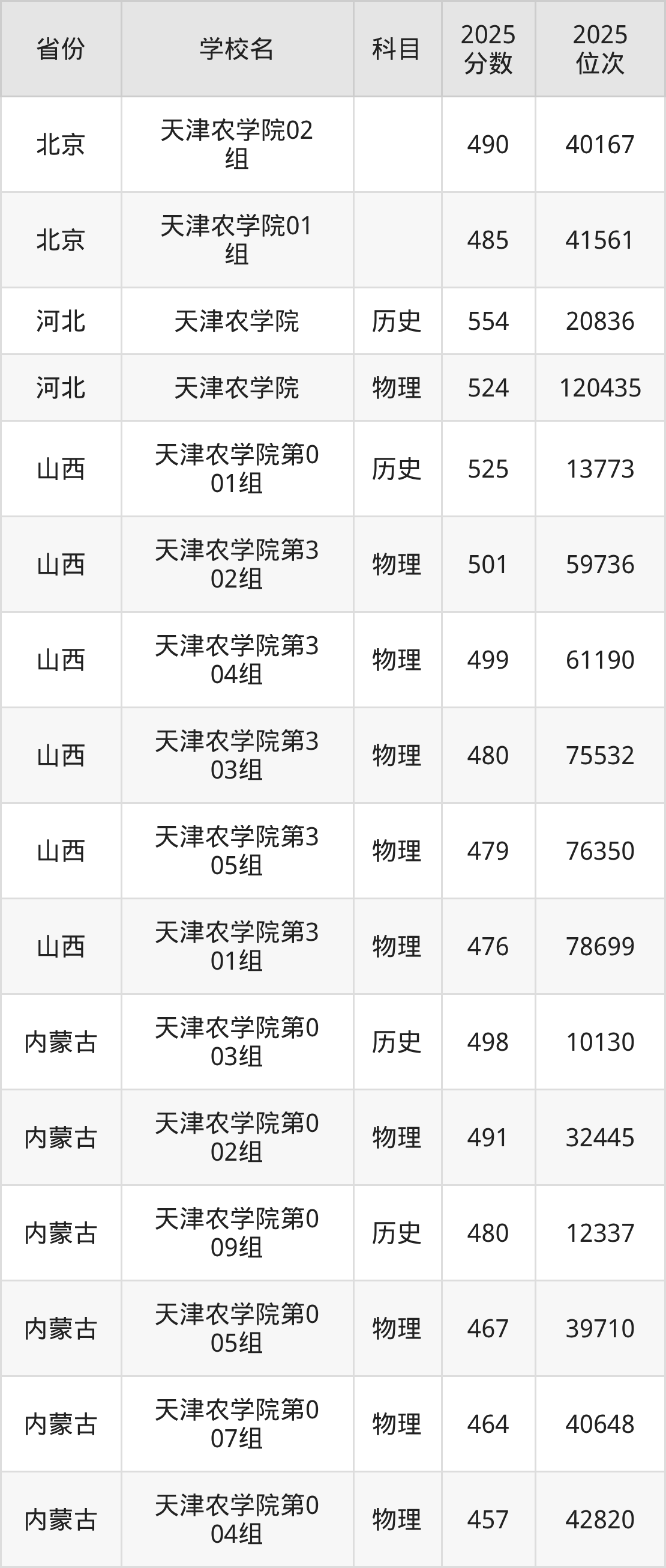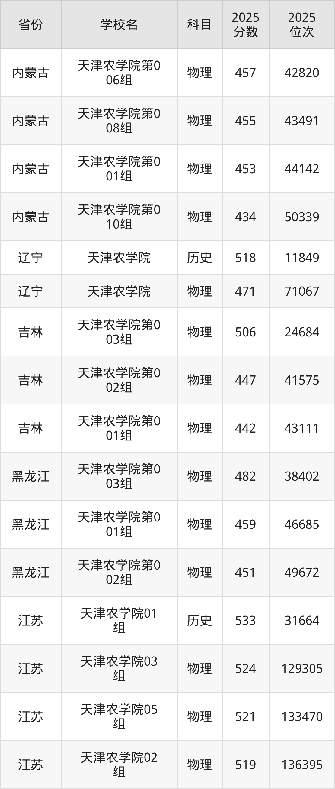 2026年天津农学院录取分数线预计在480分及以上,在各省录取最低分存在一定差异,如:2025年天津农学院在山西录取最低历史类525分、物理类476分,在内蒙古录取最低历史类480分、物理类434分,在辽宁录取最低历史类518分、物理类471分。