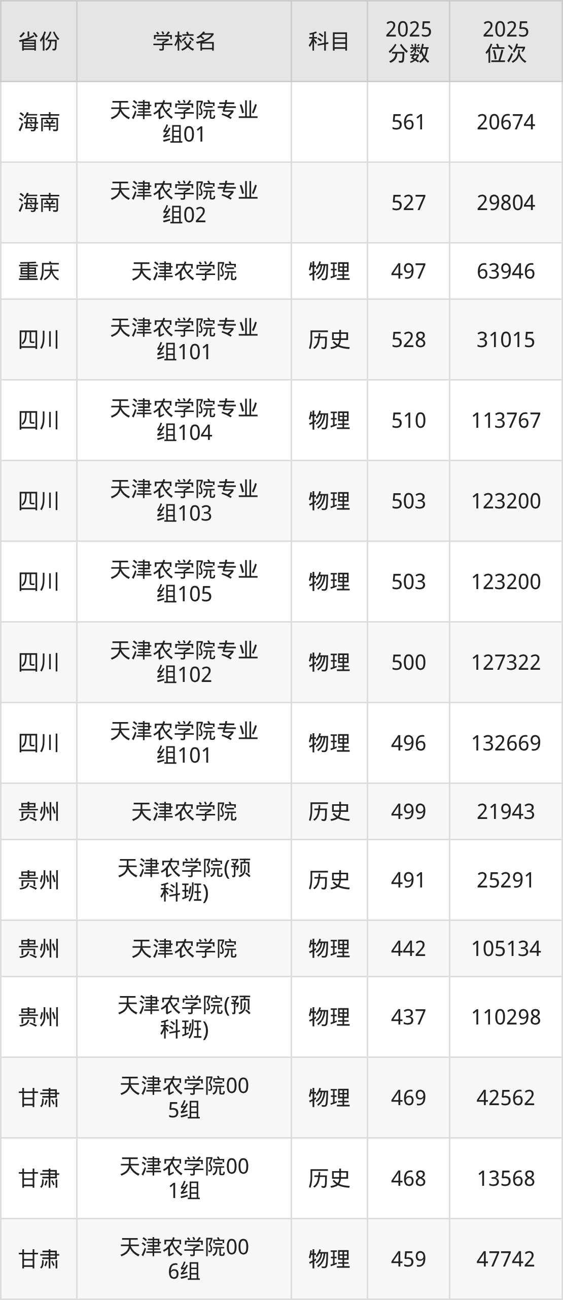 下面是天津农学院2025年录取分数线各省汇总,一起来了解下吧。
