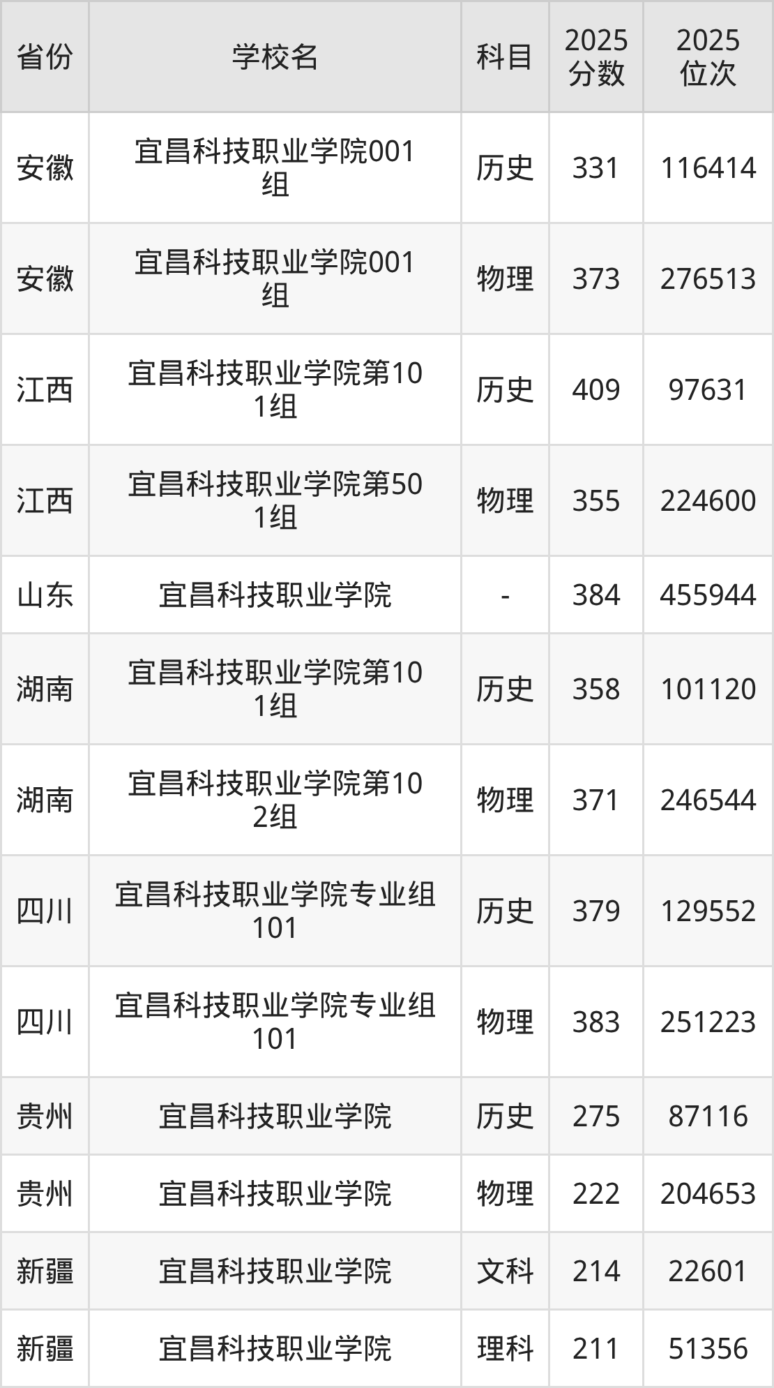 下面是宜昌科技职业学院2025年录取分数线各省汇总,一起来了解下吧。