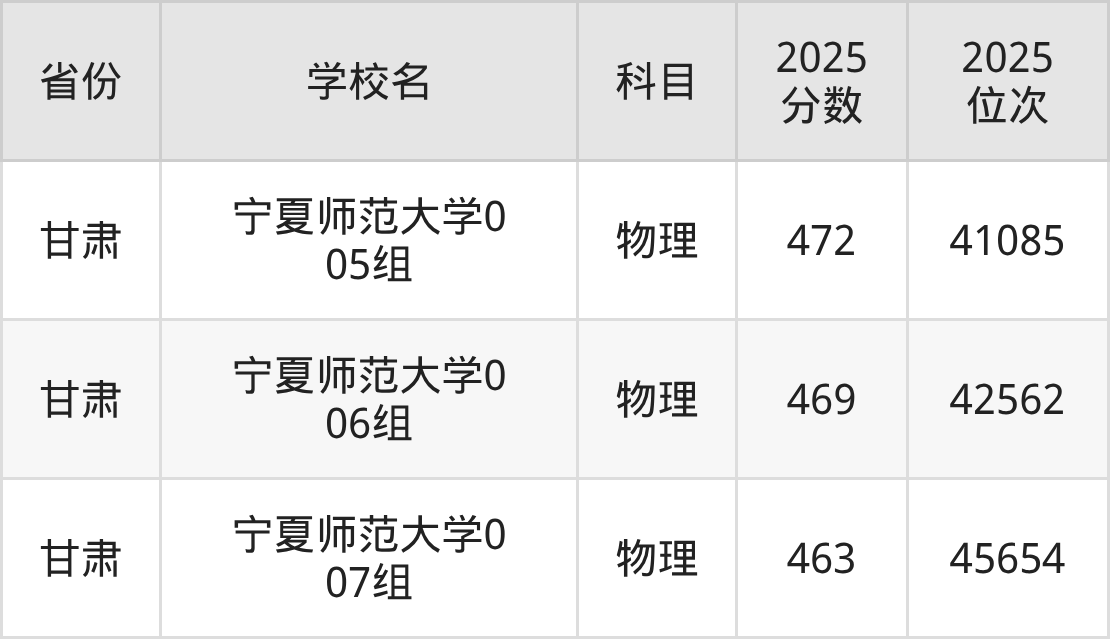 | 宁夏师范大学0 11专业组 | 物理 | 421 | 20127 |