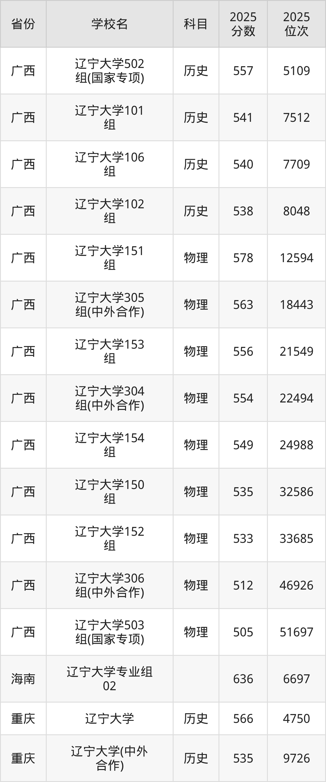 2025年辽宁大学在省内分历史物理科目类录取,其中历史类最低分是538分、对应位次是8660名;物理类最低分是534分,对应位次是40128名。