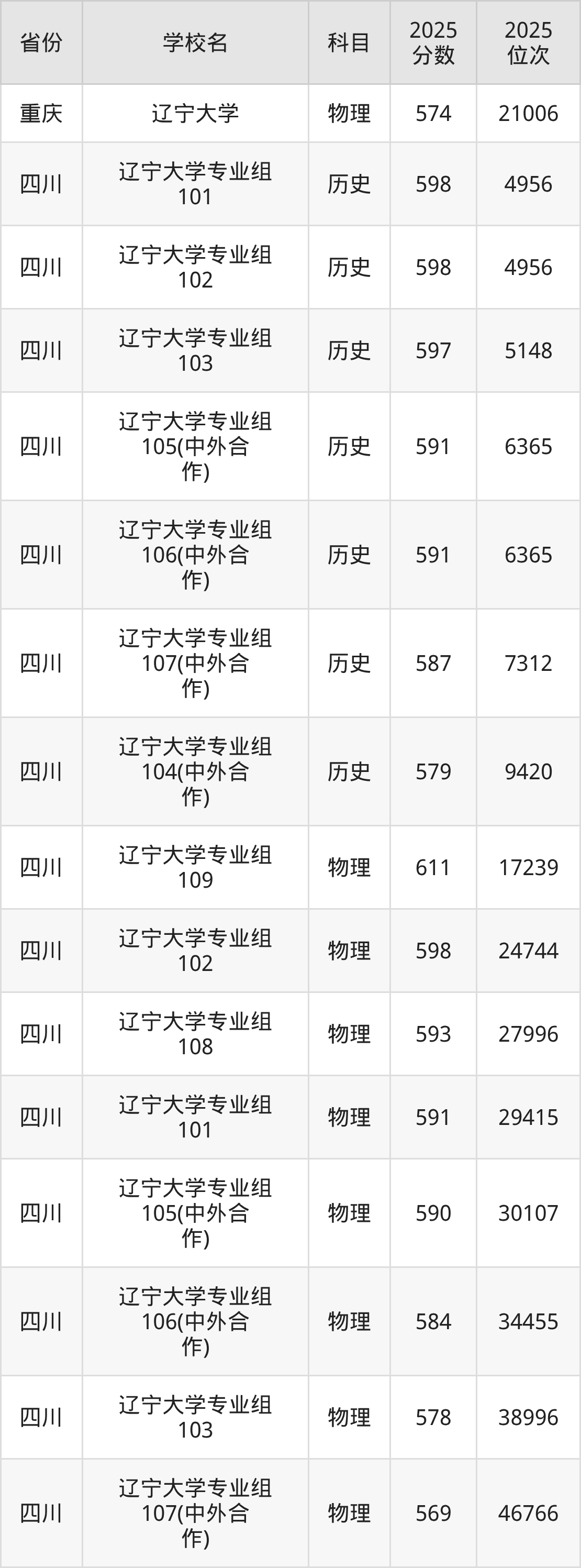 | 学校名 | 科目 | 2025 分数 | 2025 位次 |