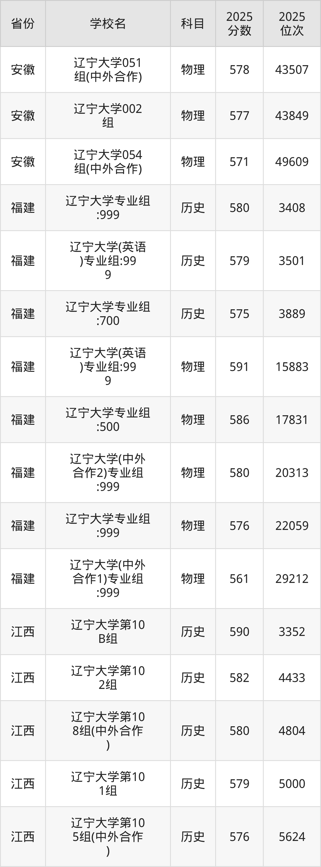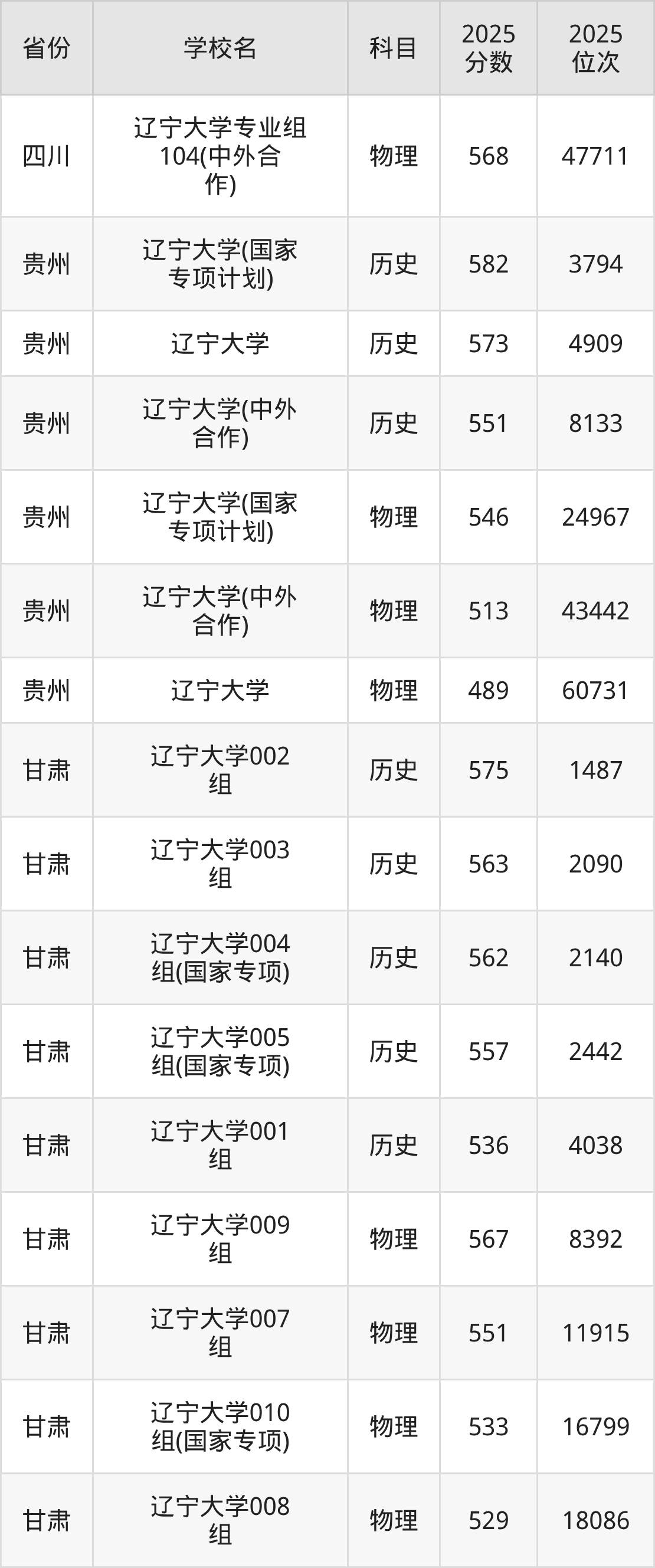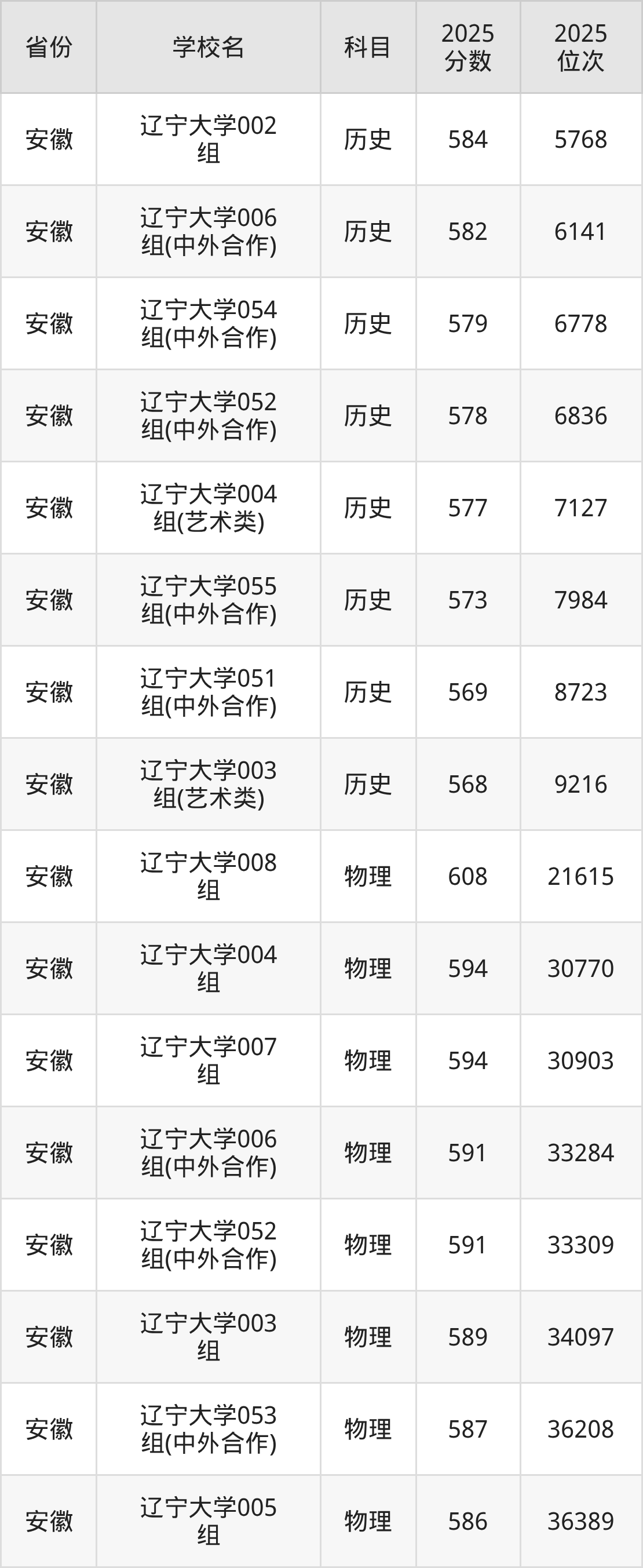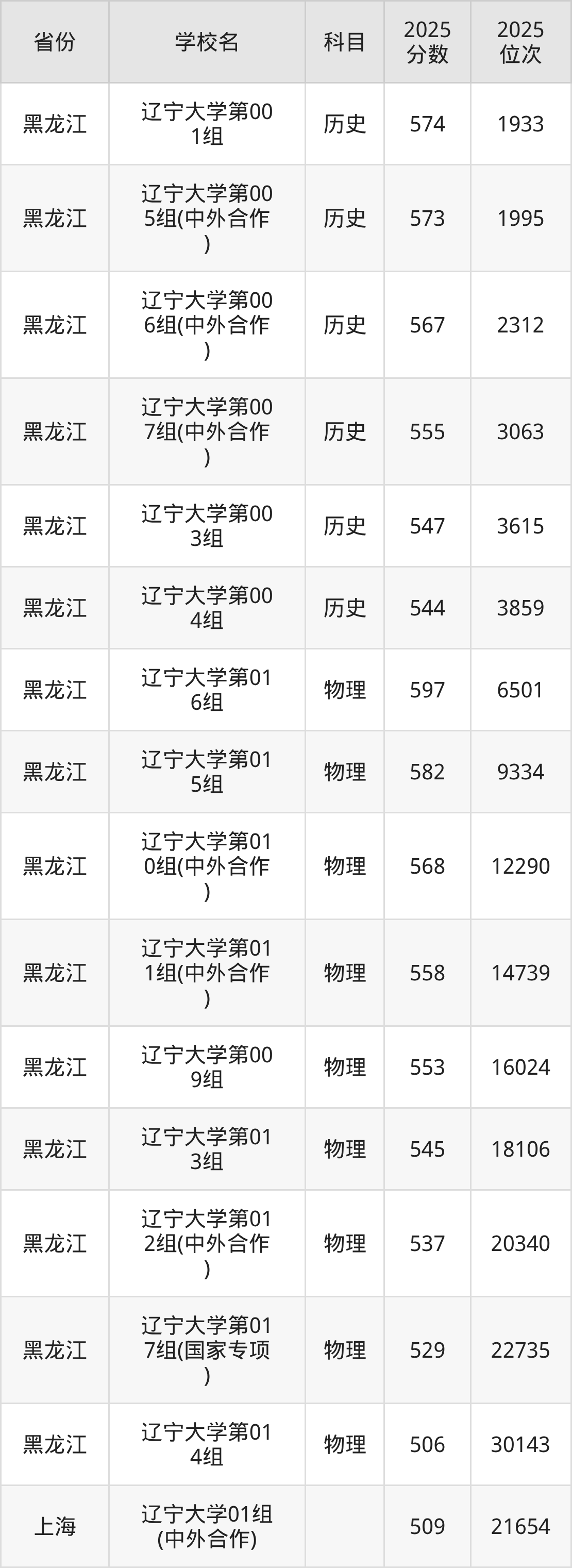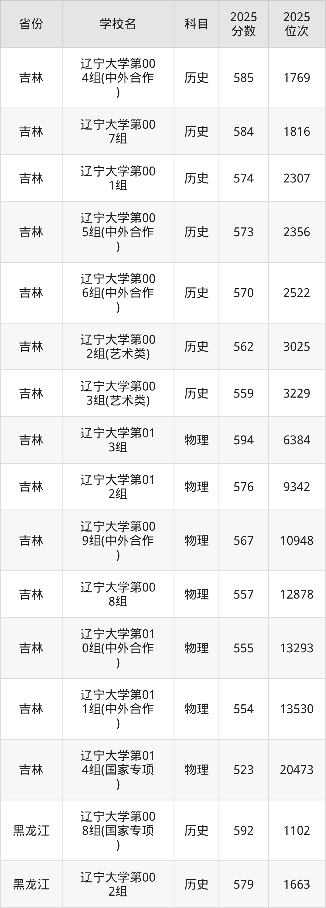 | 辽宁大学 | 历史 | 538 | 8660 |
