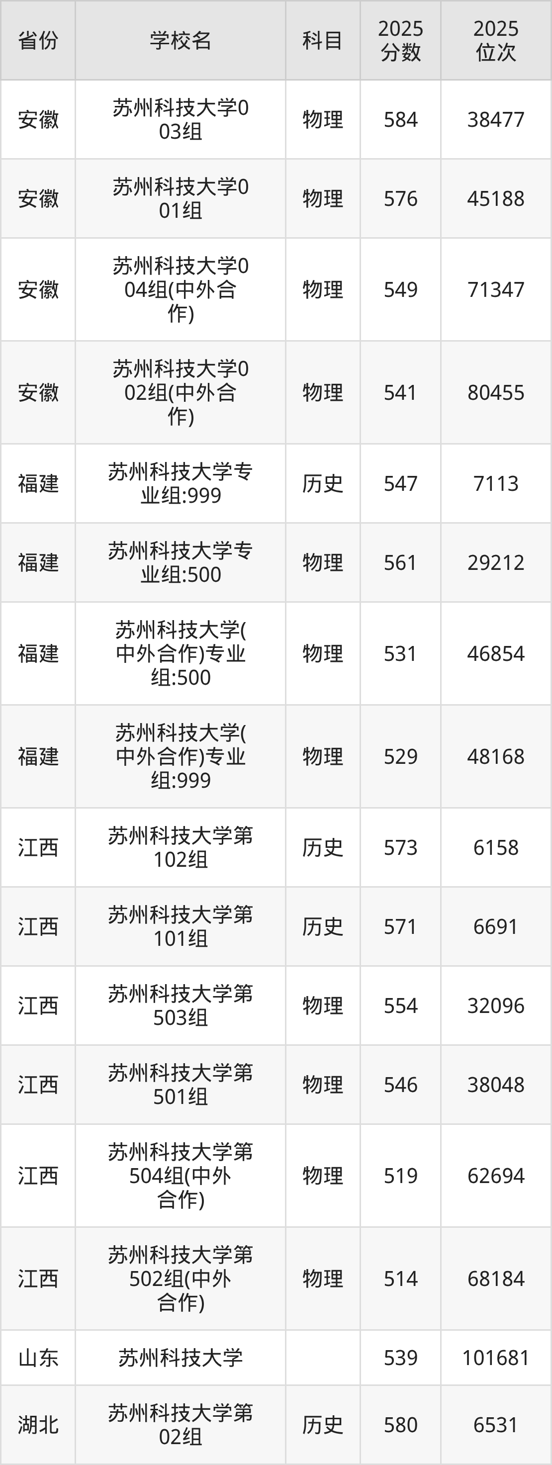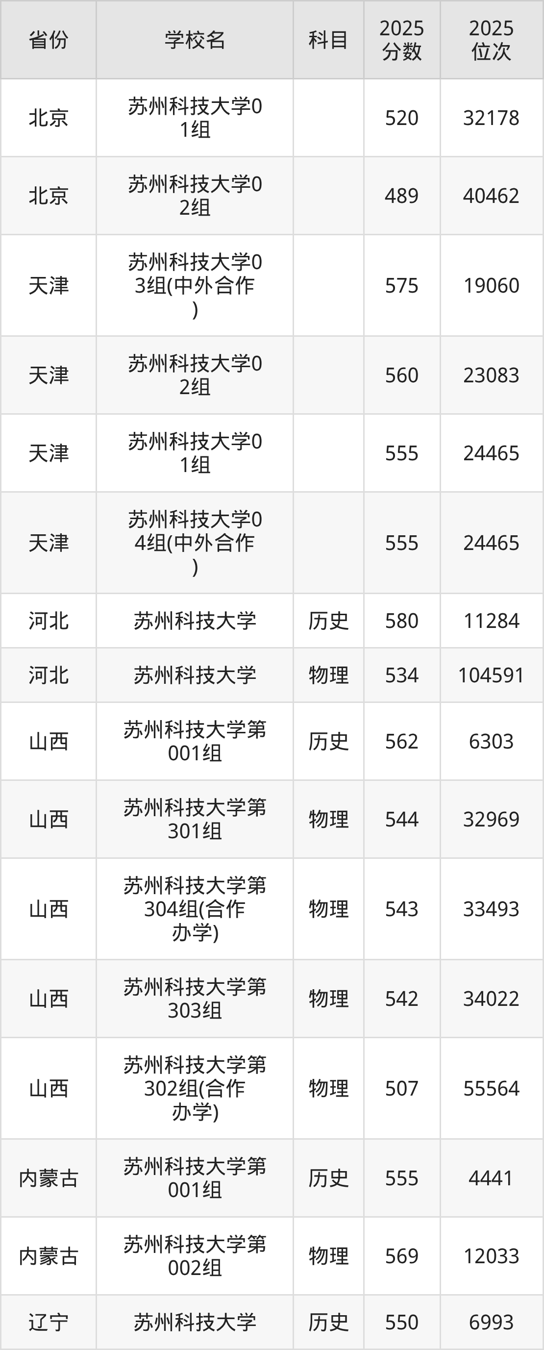 下面是苏州科技大学2025年录取分数线各省汇总,一起来了解下吧。