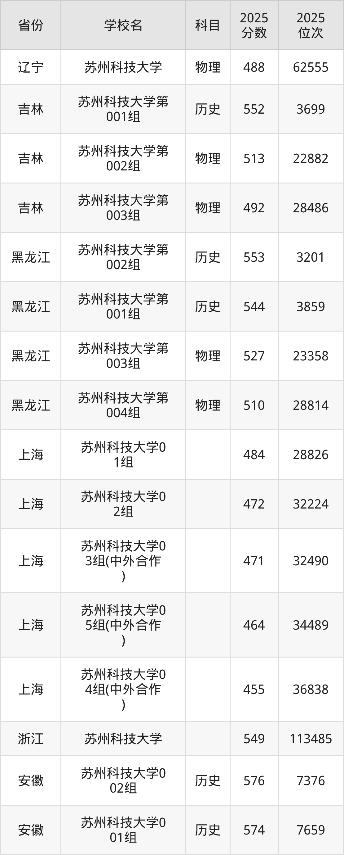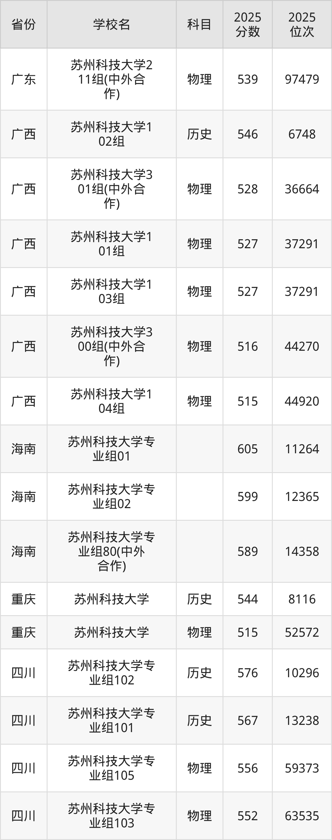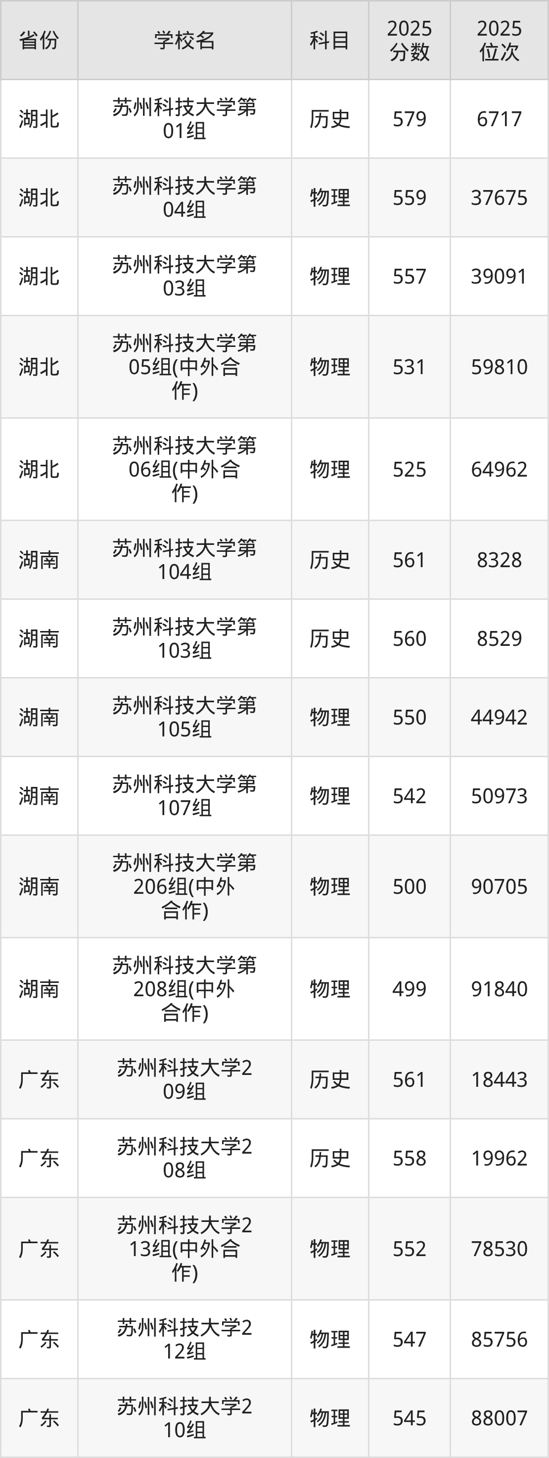 2025年苏州科技大学历史类最低分548分(24649名)、物理类最低分526分(126402名)。
