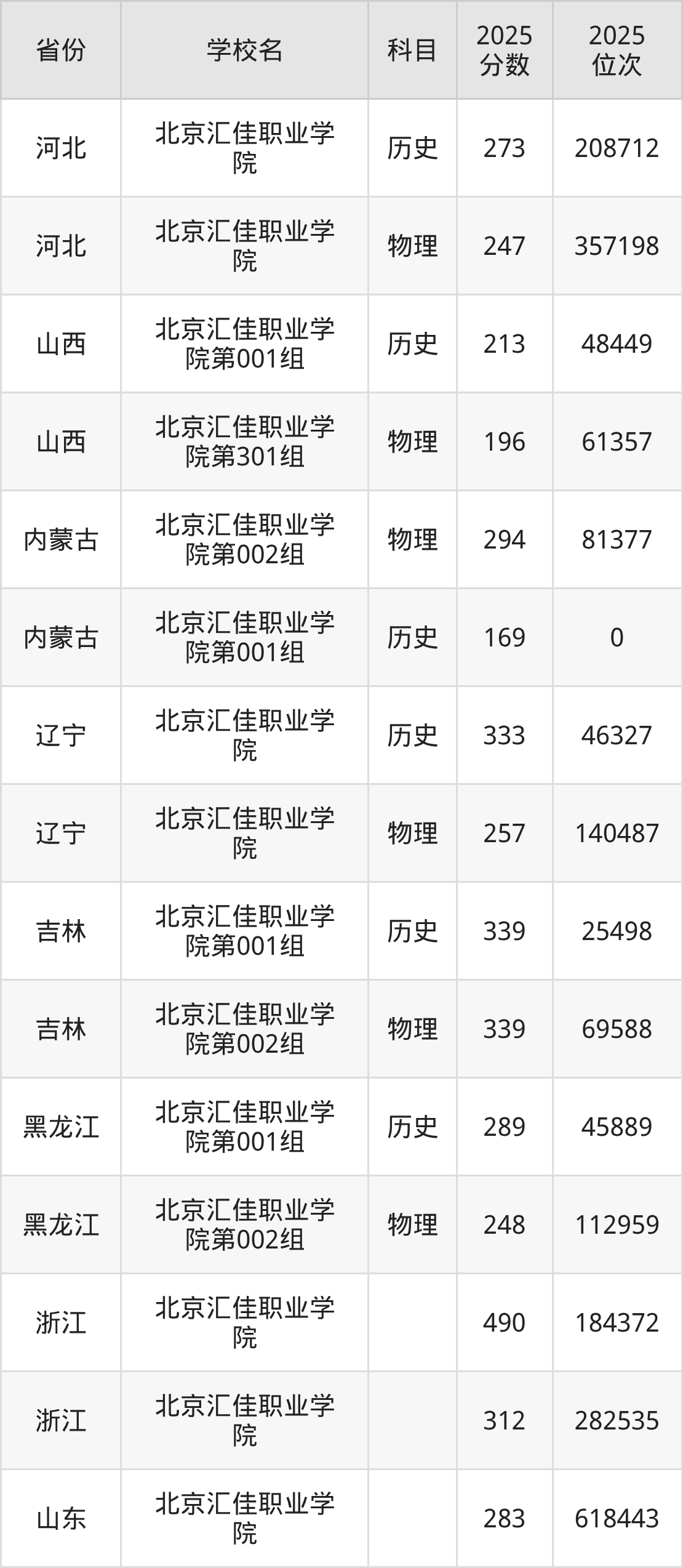 下面是北京汇佳职业学院2025年录取分数线各省汇总,一起来了解下吧。