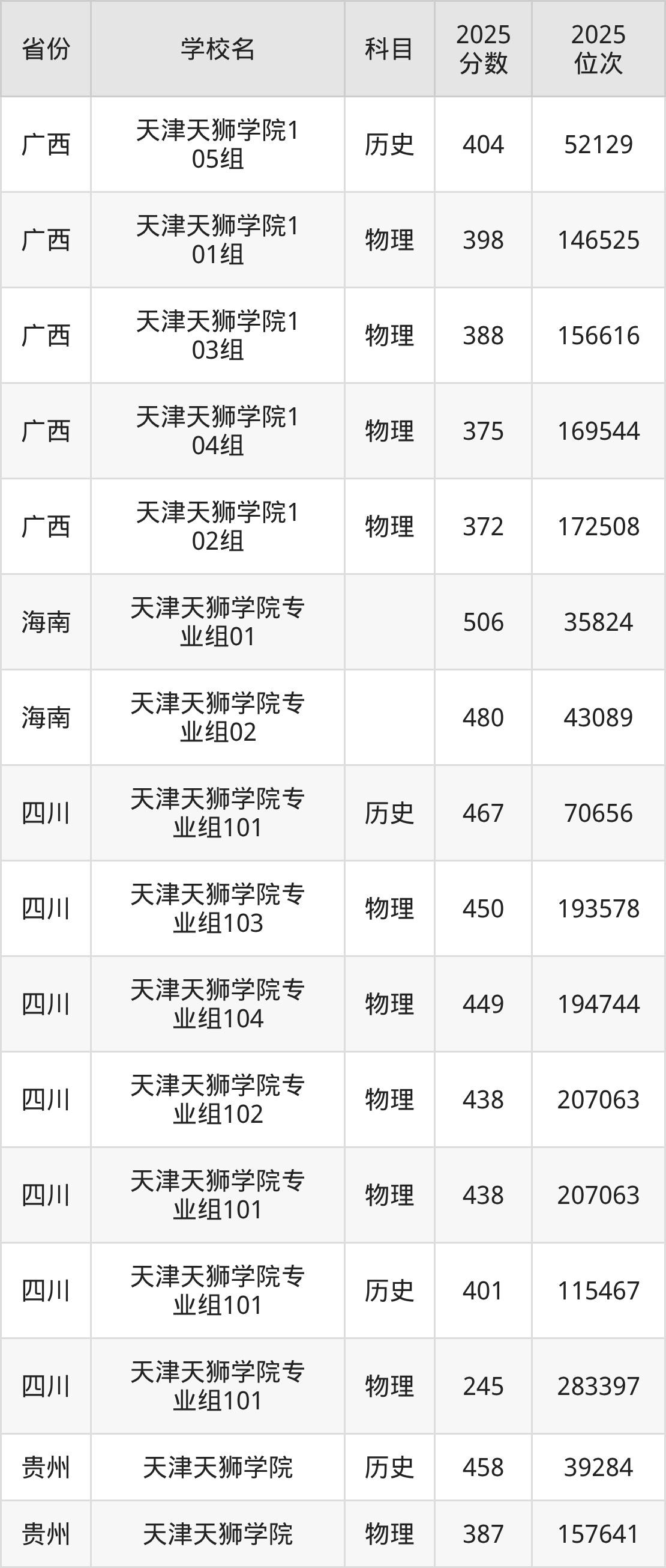 下面是天津天狮学院2025年录取分数线各省汇总,一起来了解下吧。