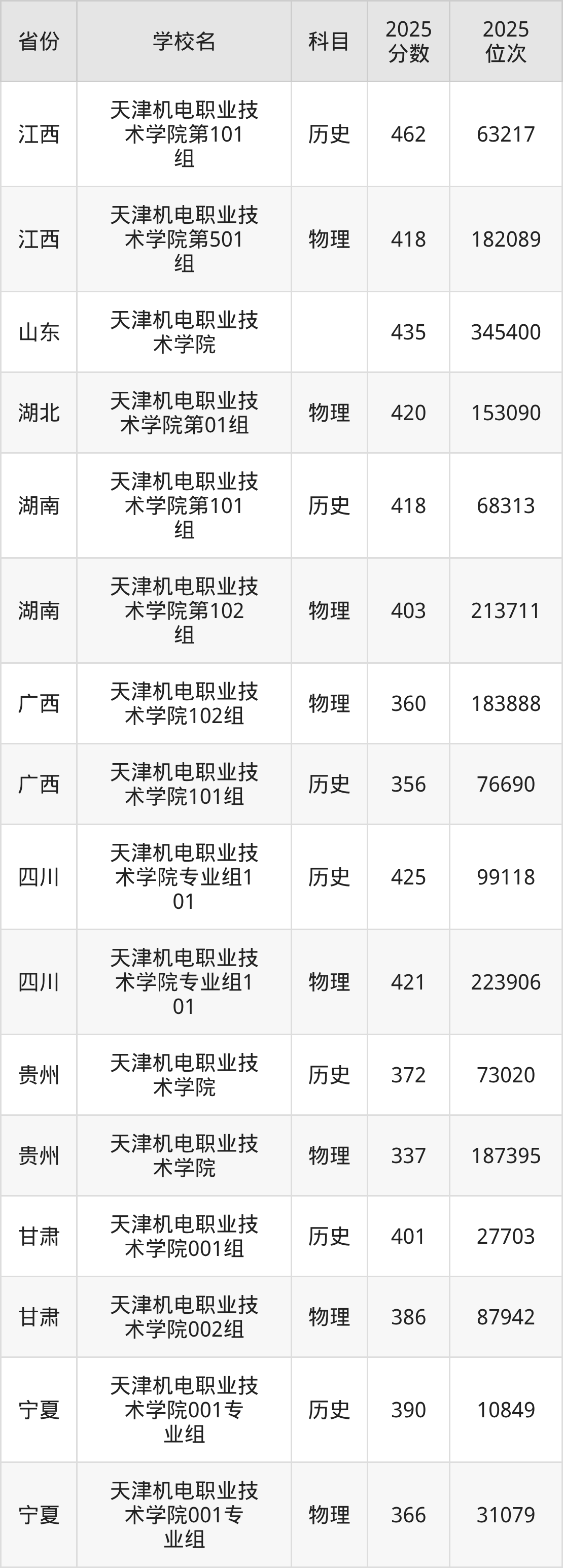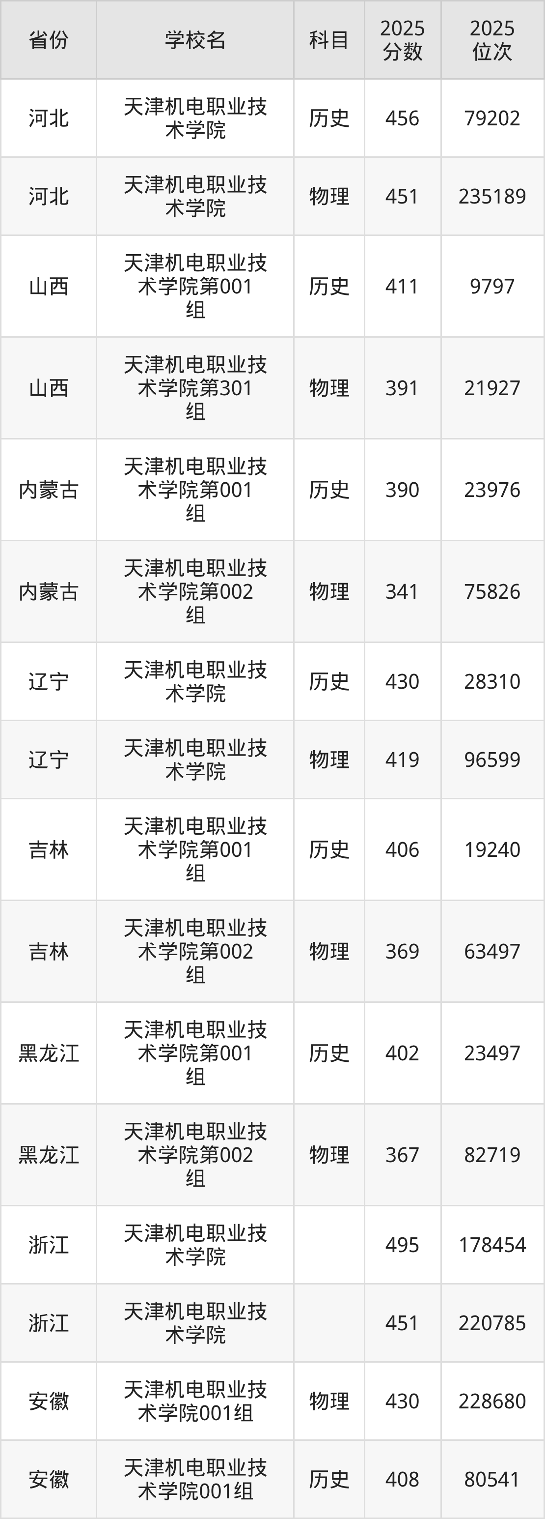 下面是天津机电职业技术学院2025年录取分数线各省汇总,一起来了解下吧。