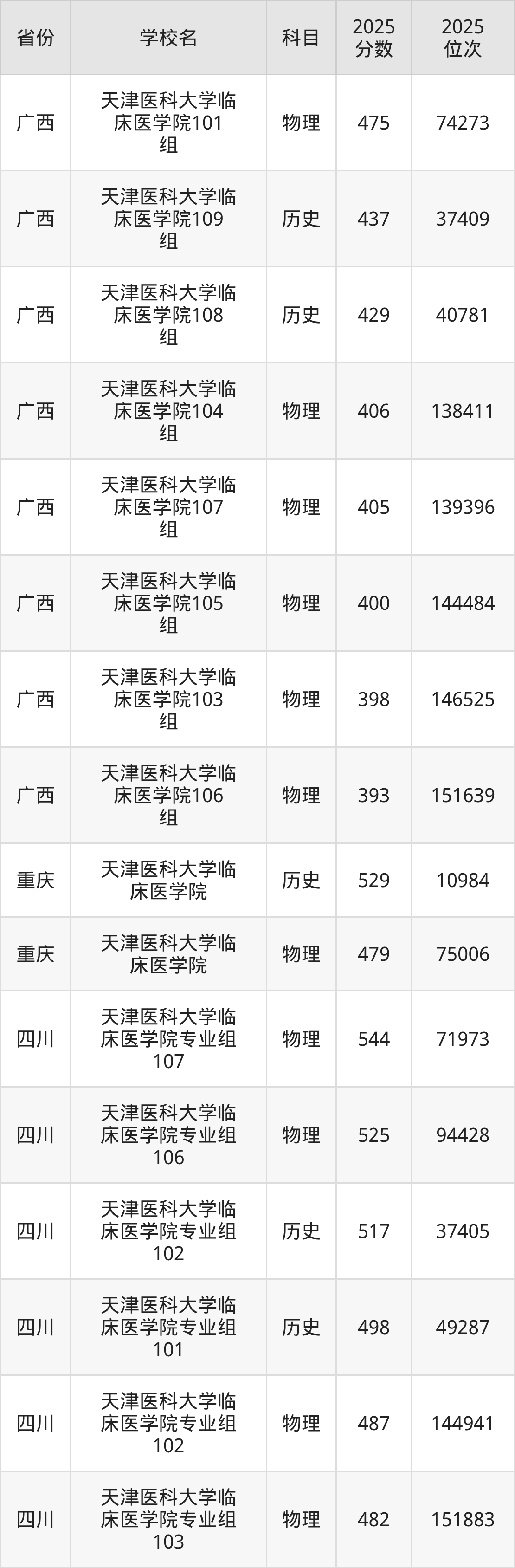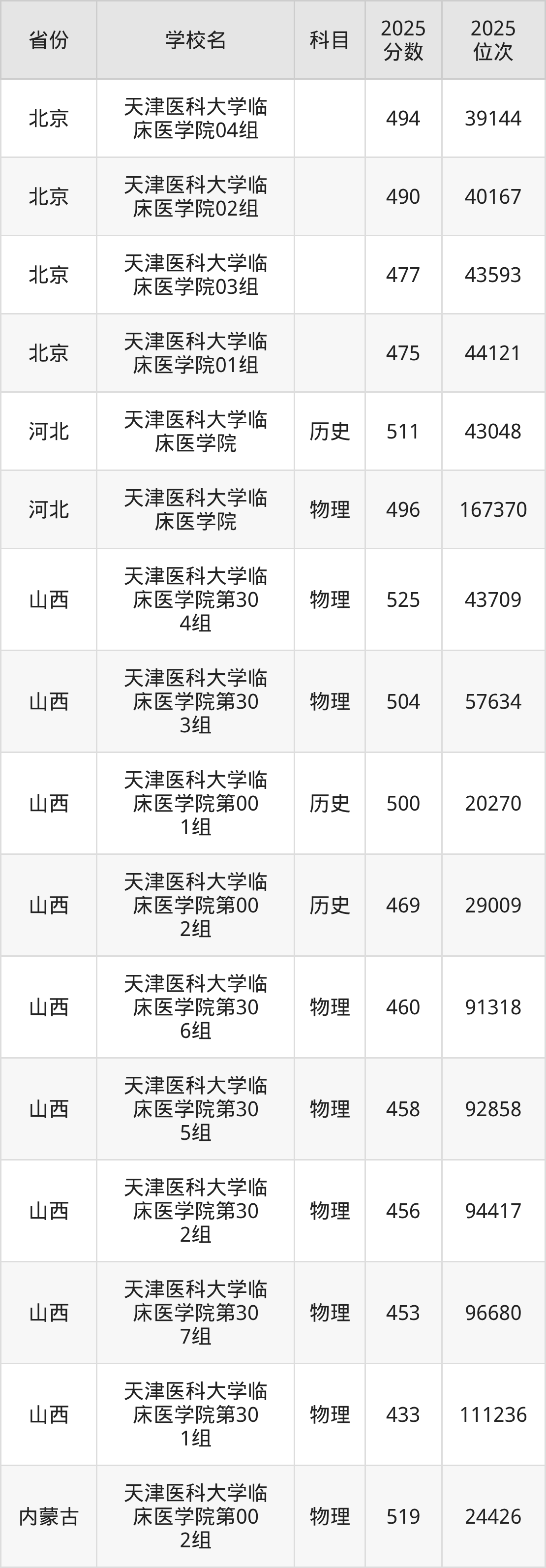 下面是天津医科大学临床医学院2025年录取分数线各省汇总,一起来了解下吧。