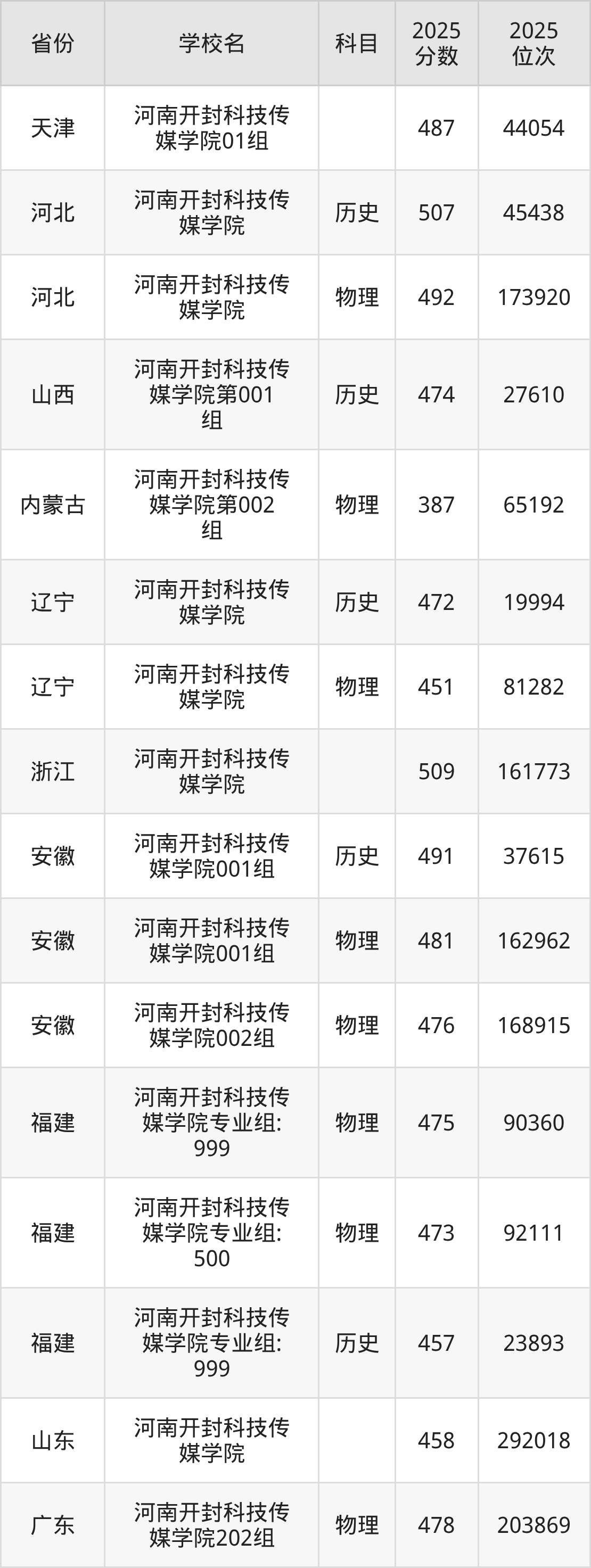 2026年河南开封科技传媒学院录取分数线预计在440分及以上,在各省录取最低分存在一定差异,如:2025年河南开封科技传媒学院在浙江录取最低分是509分,在广东录取最低物理类478分,在海南录取最低分是542分。