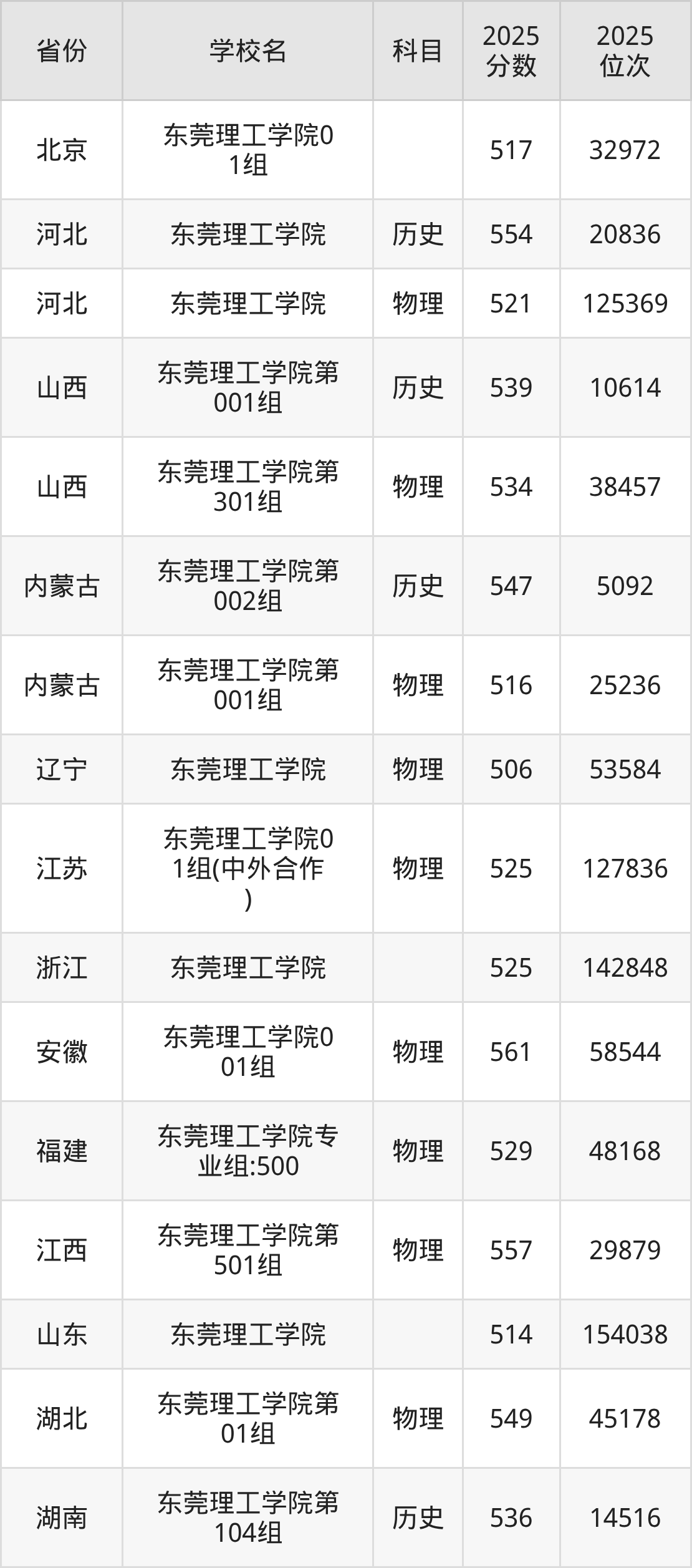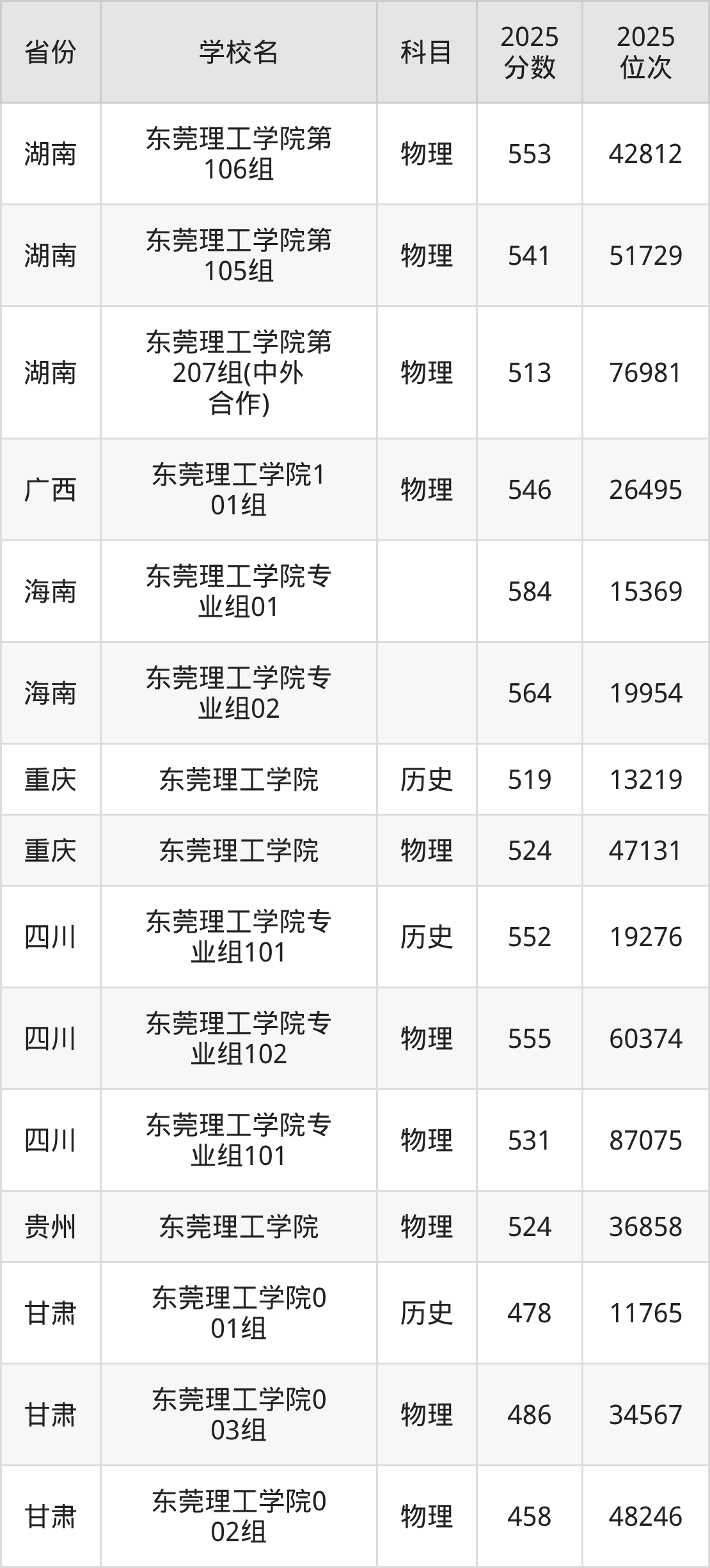 下面是东莞理工学院2025年录取分数线各省汇总,一起来了解下吧。
