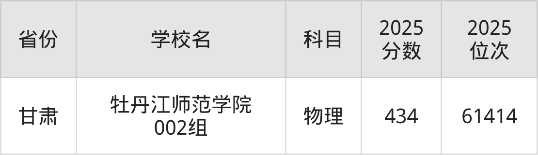 2025年牡丹江师范学院在省内分历史物理科目类录取,其中历史类最低分是431分、对应位次是18177名;物理类最低分是380分,对应位次是77743名。