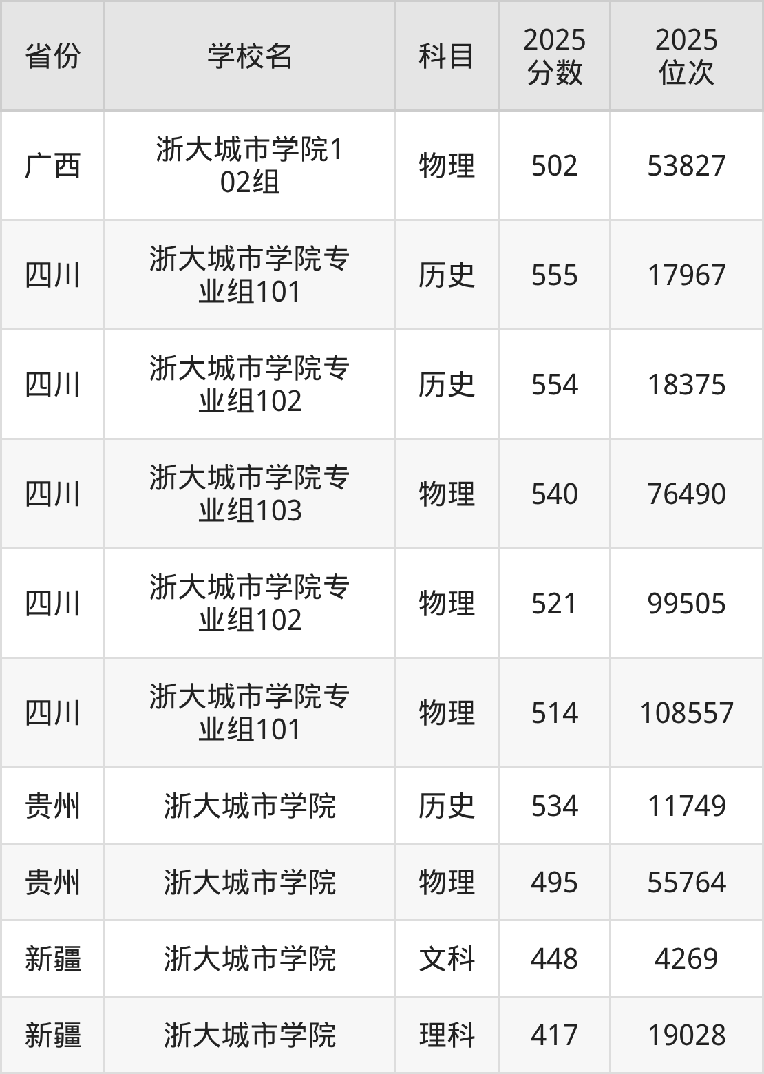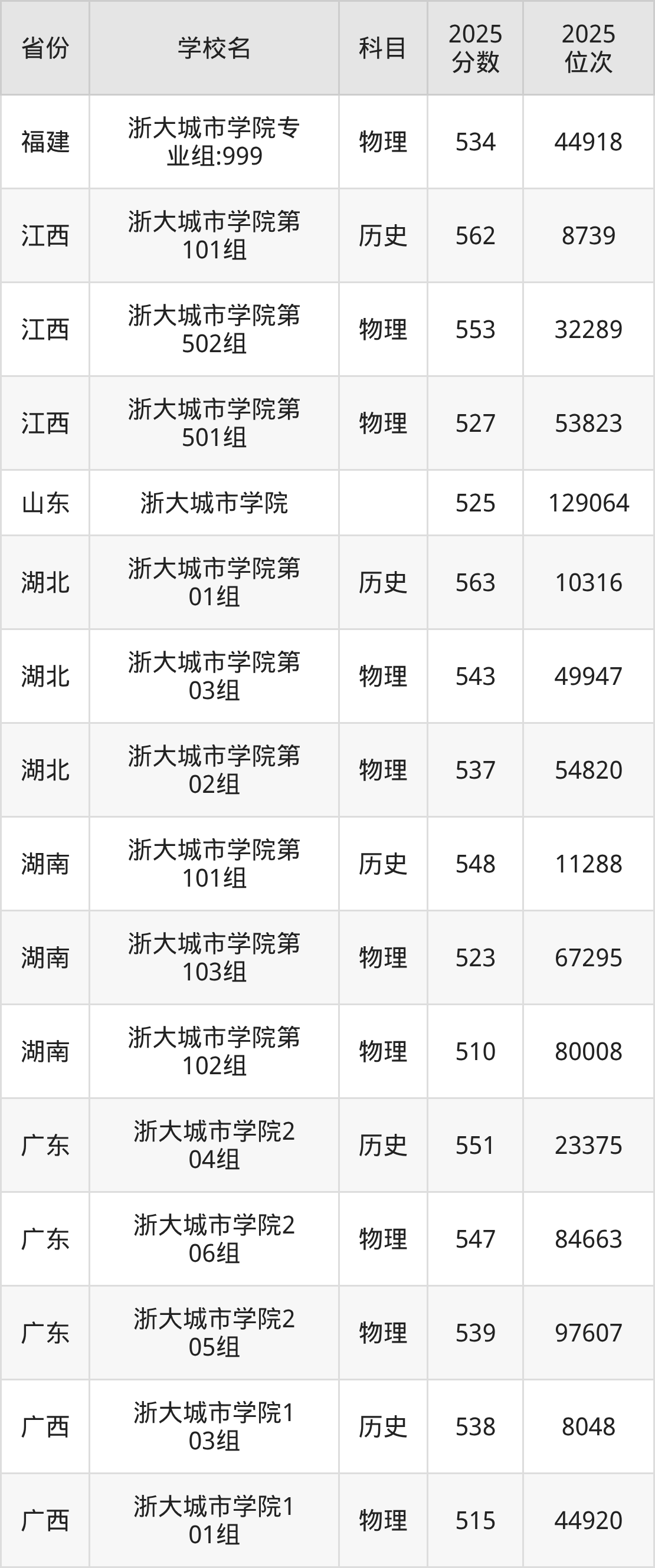 下面是浙大城市学院2025年录取分数线各省汇总,一起来了解下吧。