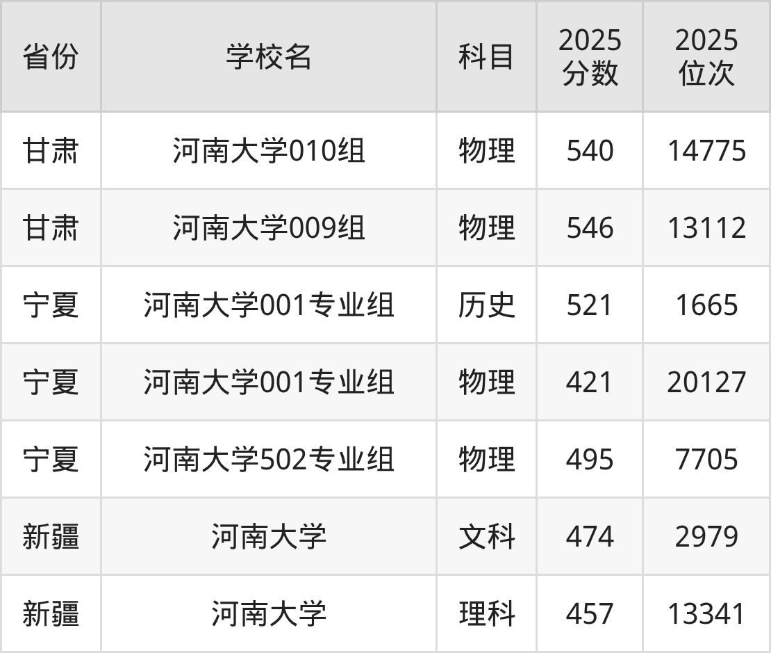 | 河南大学第40 5组(地方专项 计划组) | 物理 | 590 | 57947 |