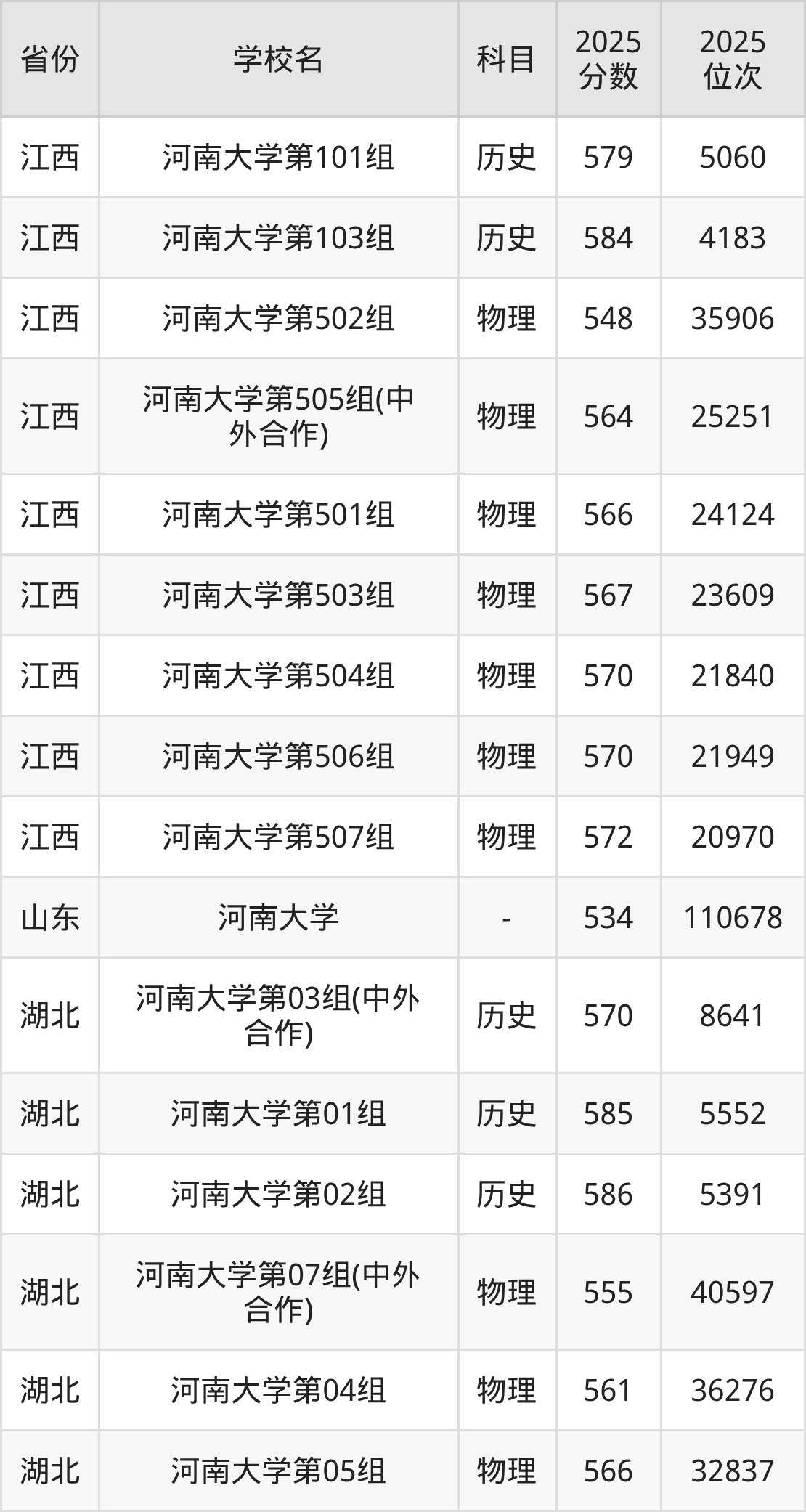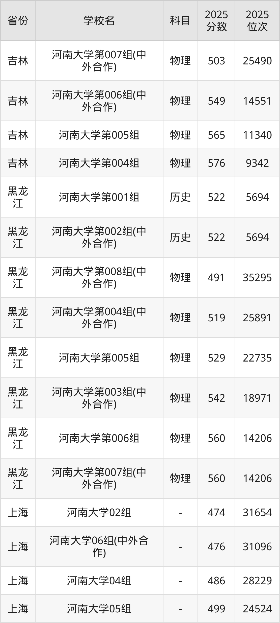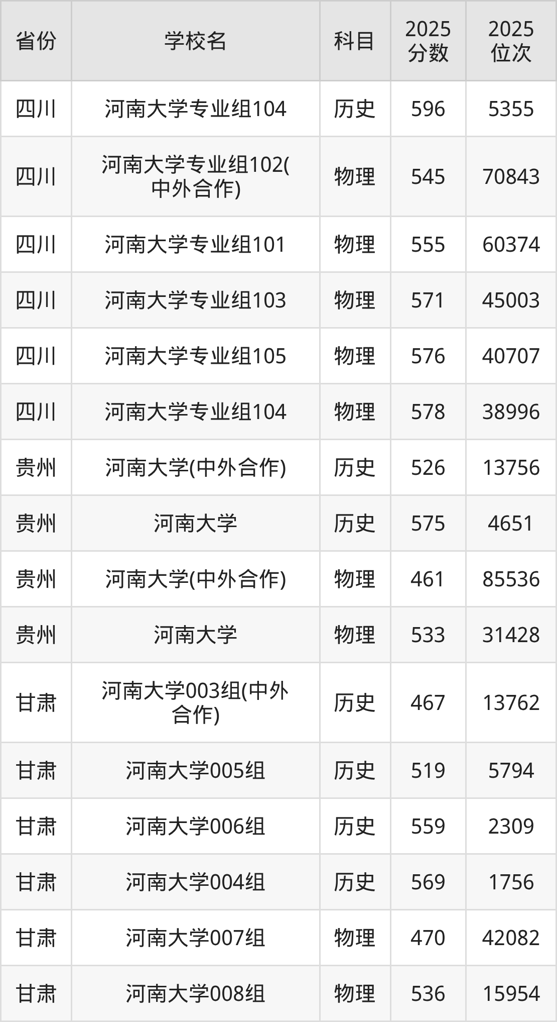 | 河南大学第40 3组(地方专项 计划组) | 物理 | 599 | 47010 |