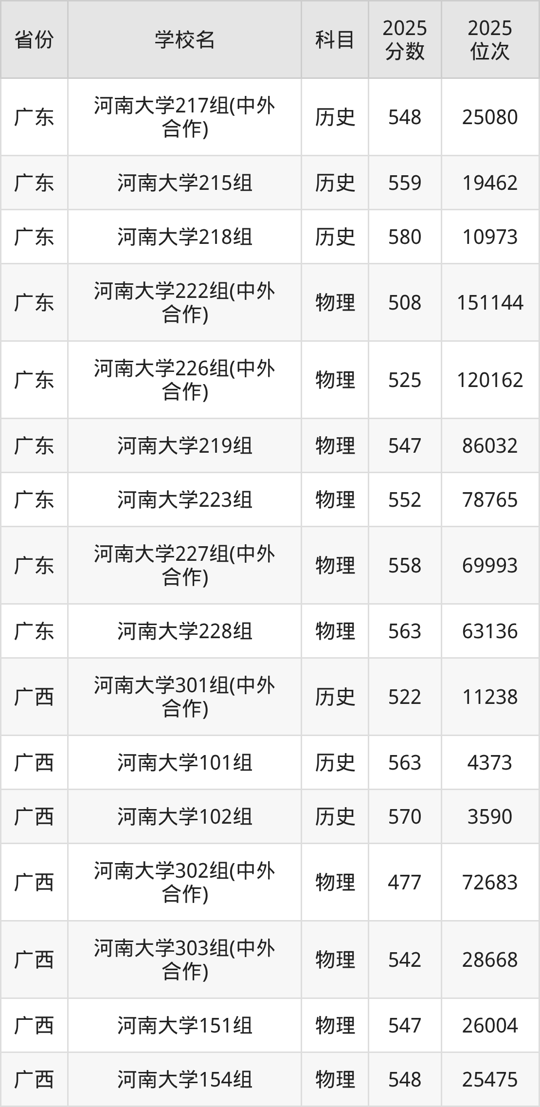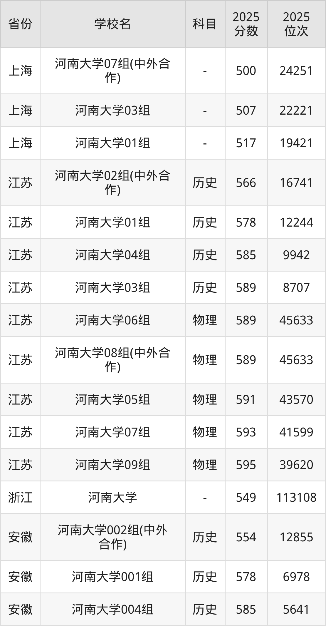 | 河南大学(中外 合作)第202 组(中外合作办 学组) | 历史 | 556 | 23123 |
