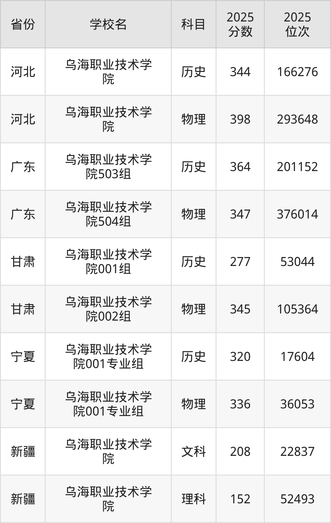下面是乌海职业技术学院2025年录取分数线各省汇总,一起来了解下吧。