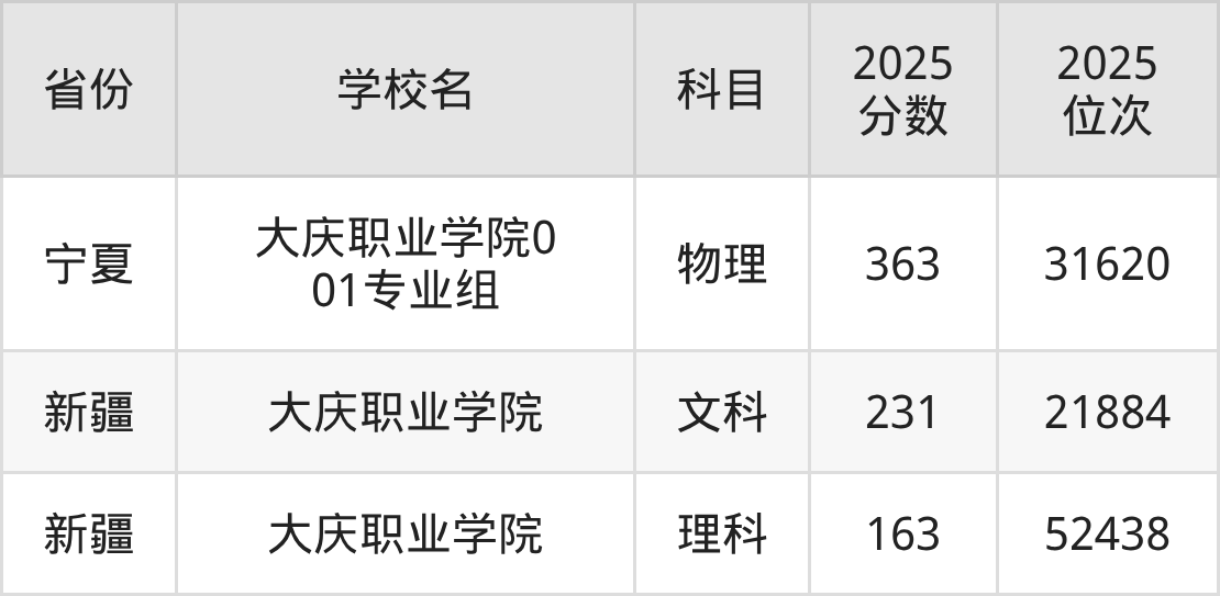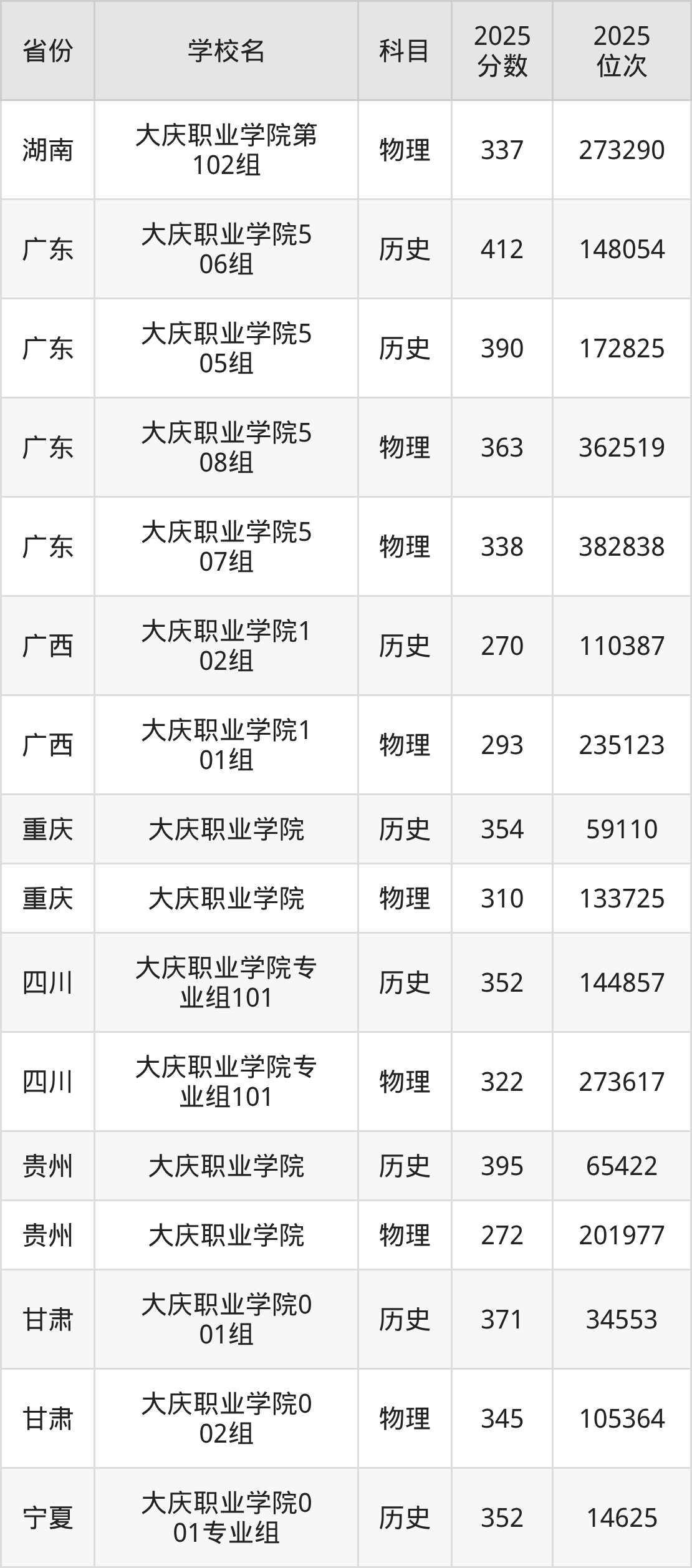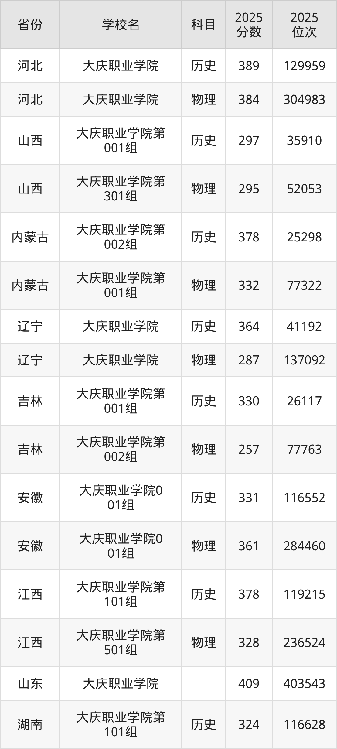 下面是大庆职业学院2025年录取分数线各省汇总,一起来了解下吧。