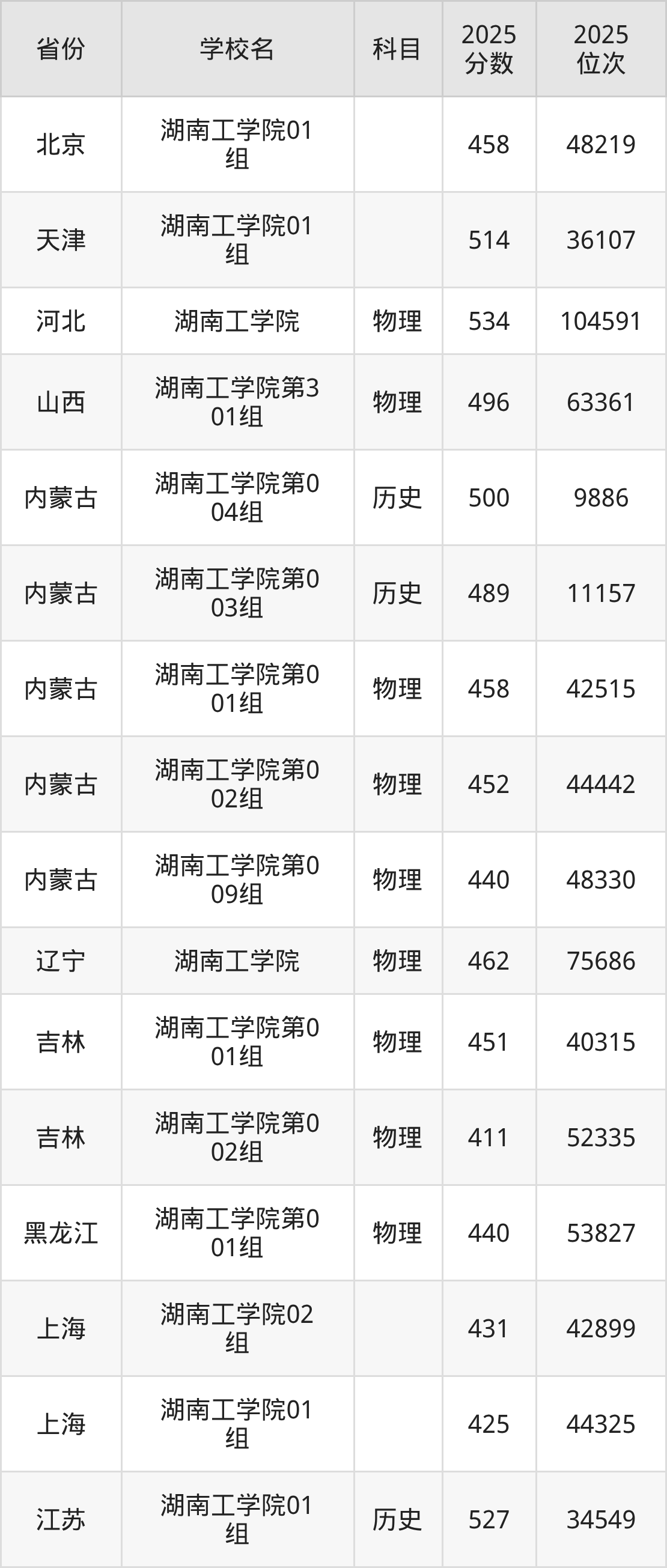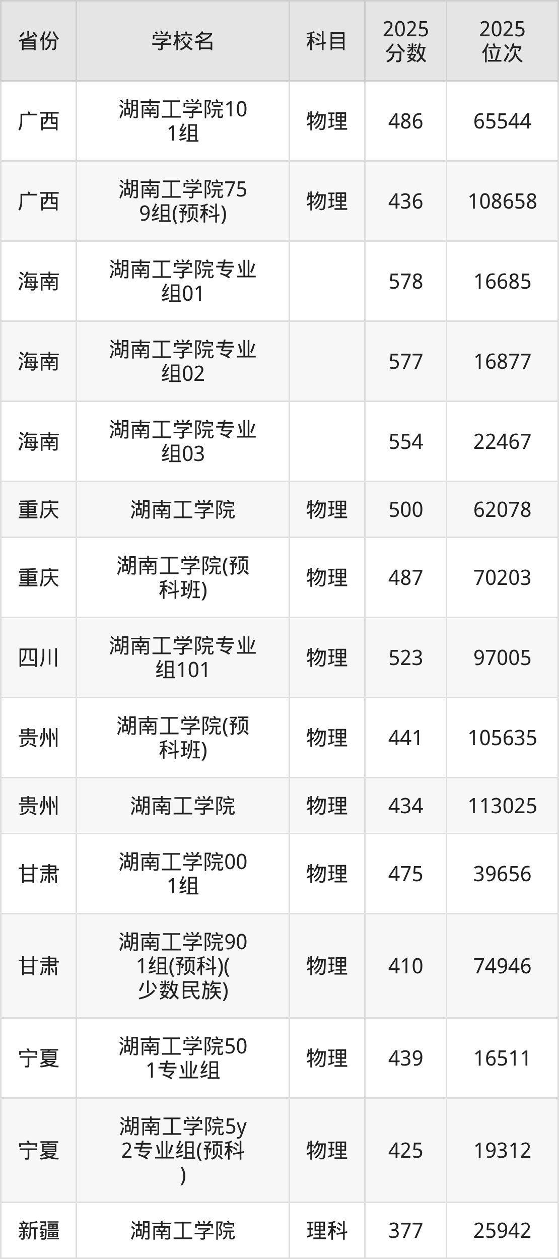 2025年湖南工学院历史类最低分494分(29645名)、物理类最低分446分(158935名)。