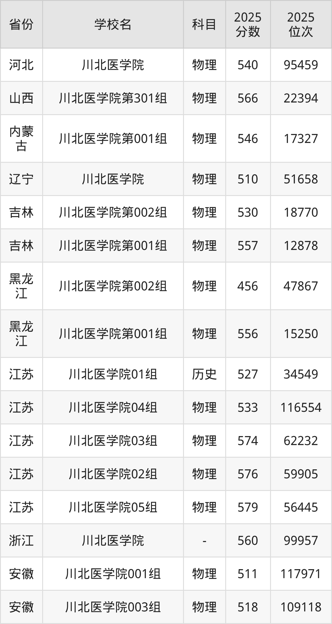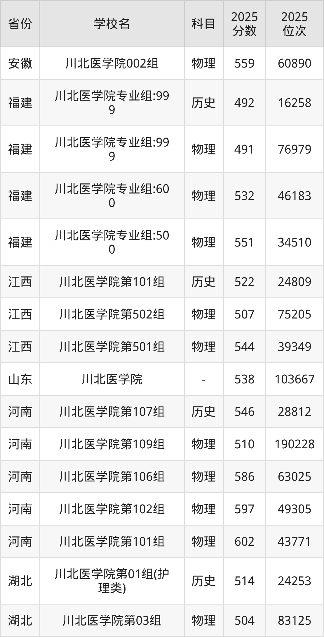 下面是川北医学院2025年录取分数线各省汇总,一起来了解下吧。