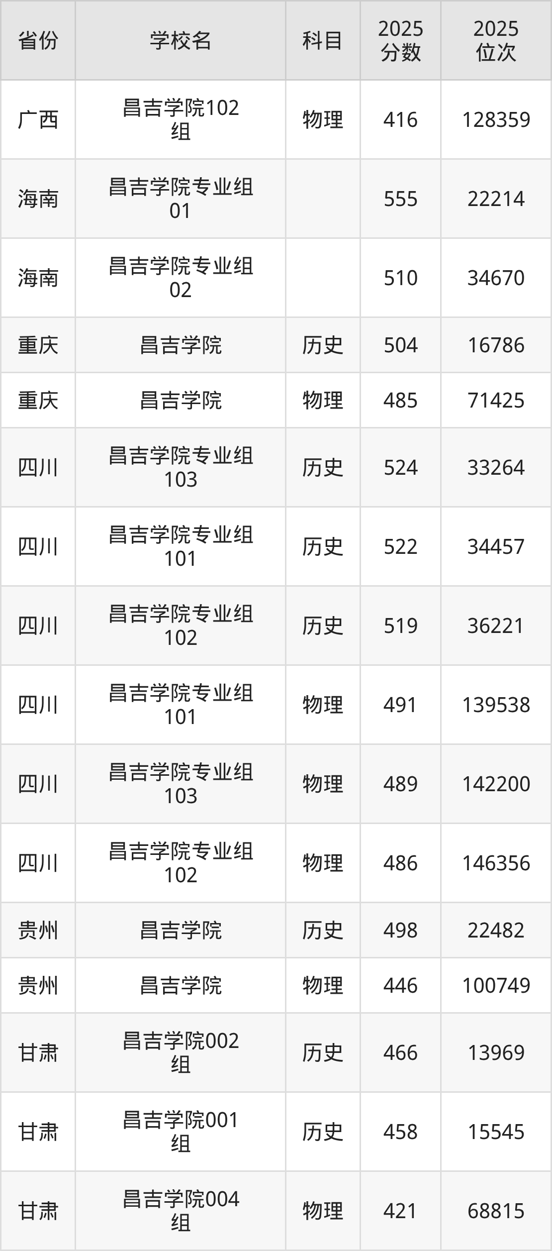 下面是昌吉学院2025年录取分数线各省汇总,一起来了解下吧。