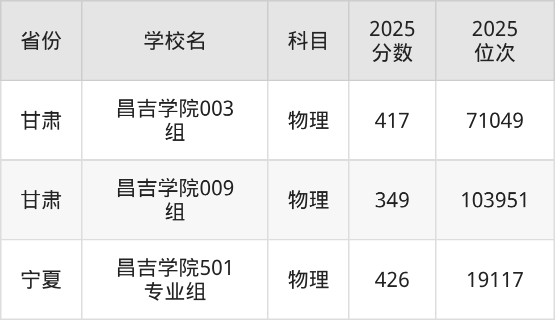 2025年昌吉学院文科最低分372分(10285名)、理科最低分256分(47474名)。