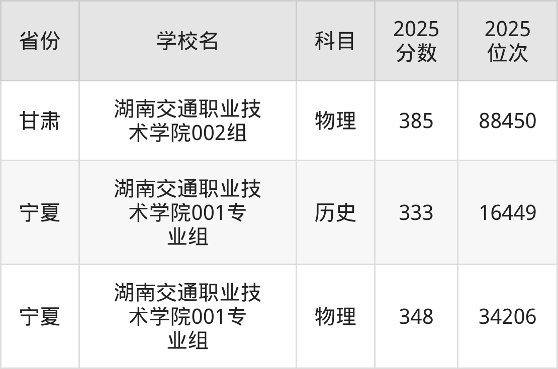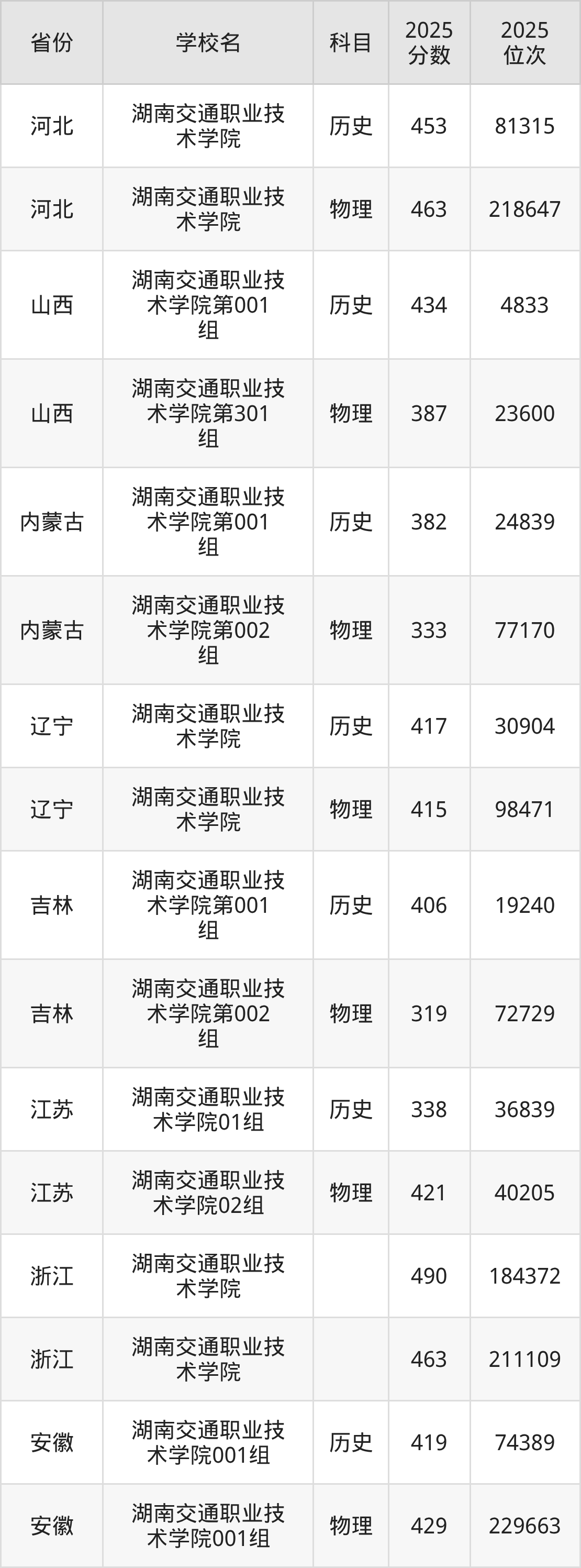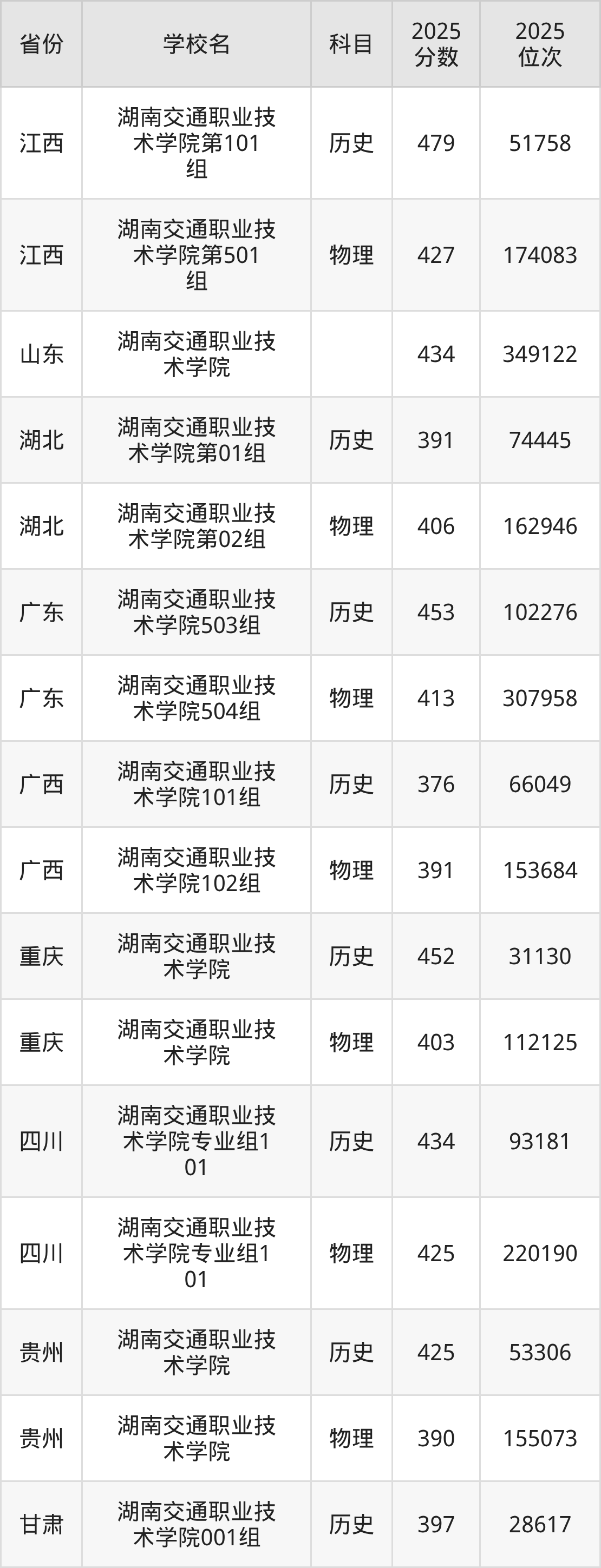 下面是湖南交通职业技术学院2025年录取分数线各省汇总,一起来了解下吧。