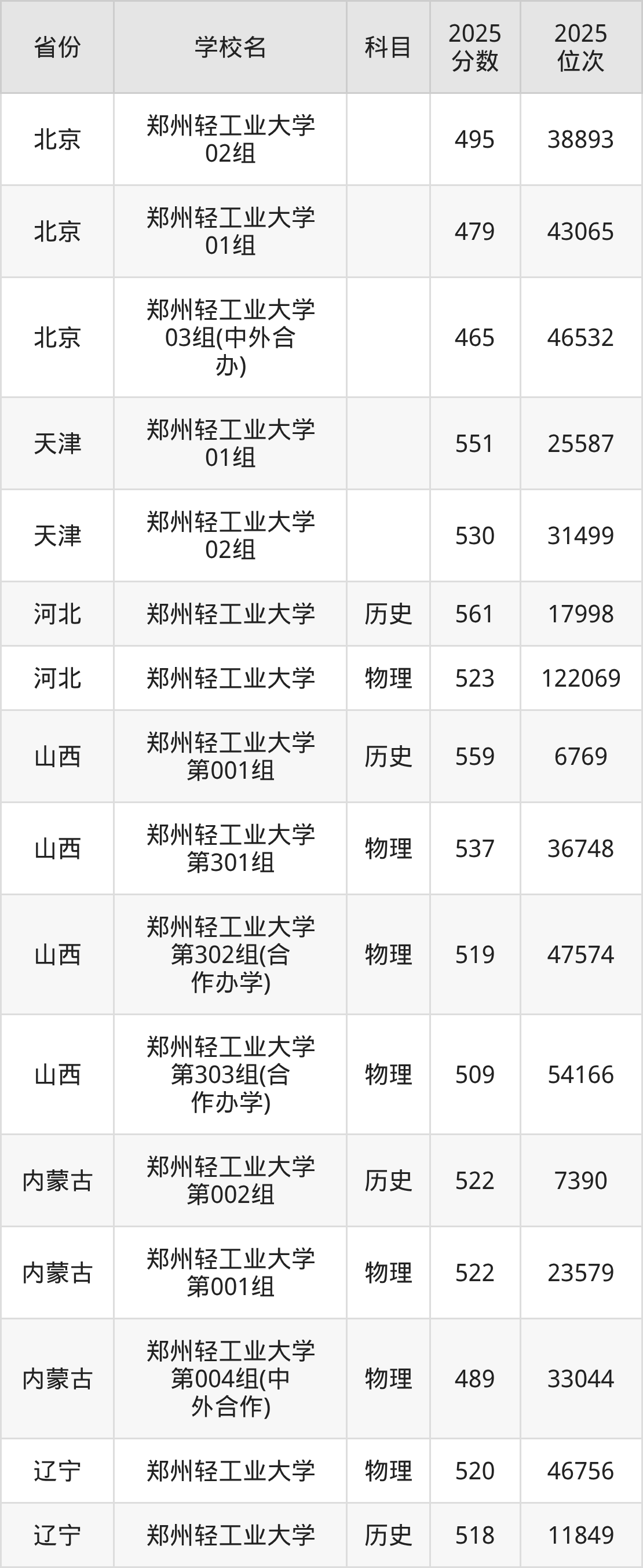 下面是郑州轻工业大学2025年录取分数线各省汇总,一起来了解下吧。