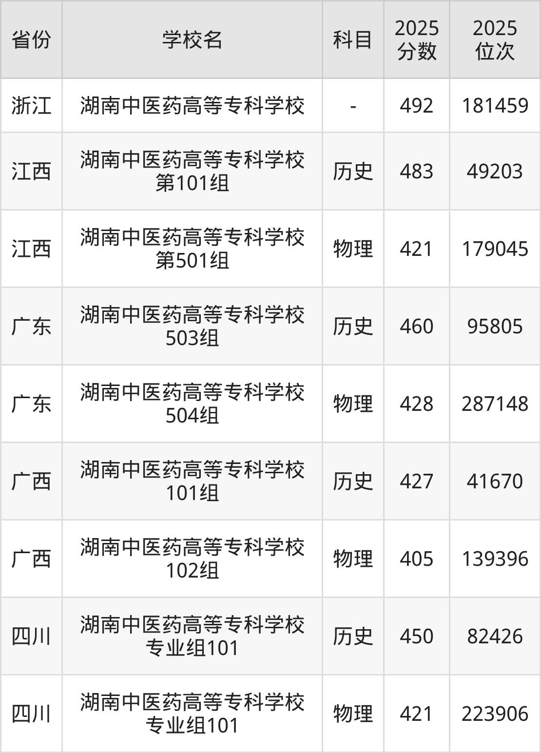 下面是湖南中医药高等专科学校2025年录取分数线各省汇总,一起来了解下吧。