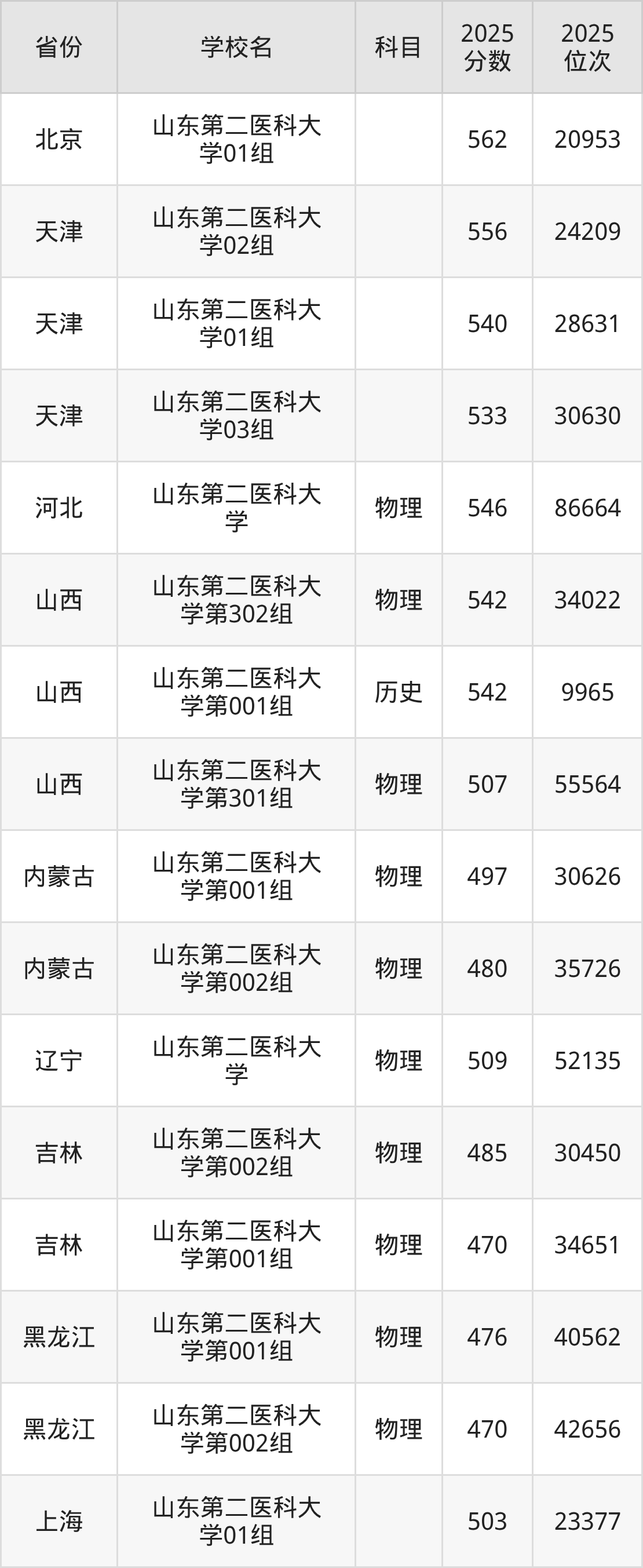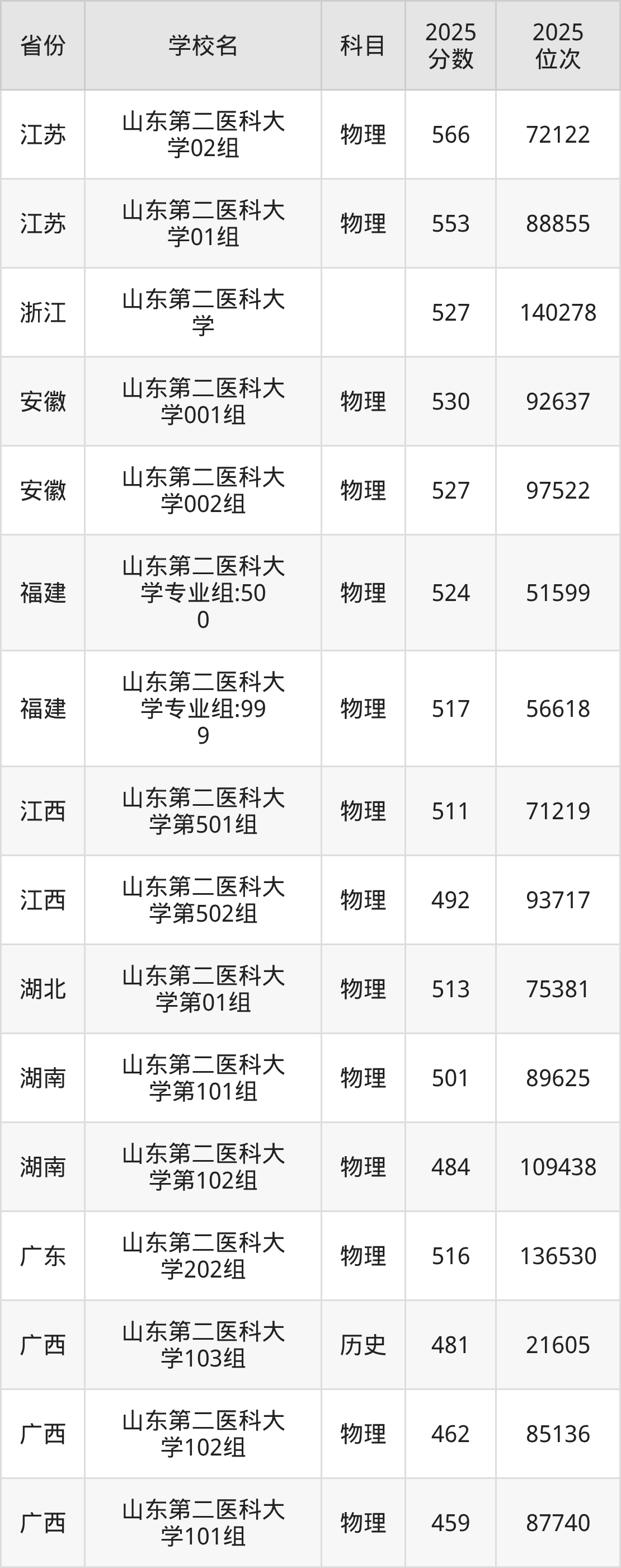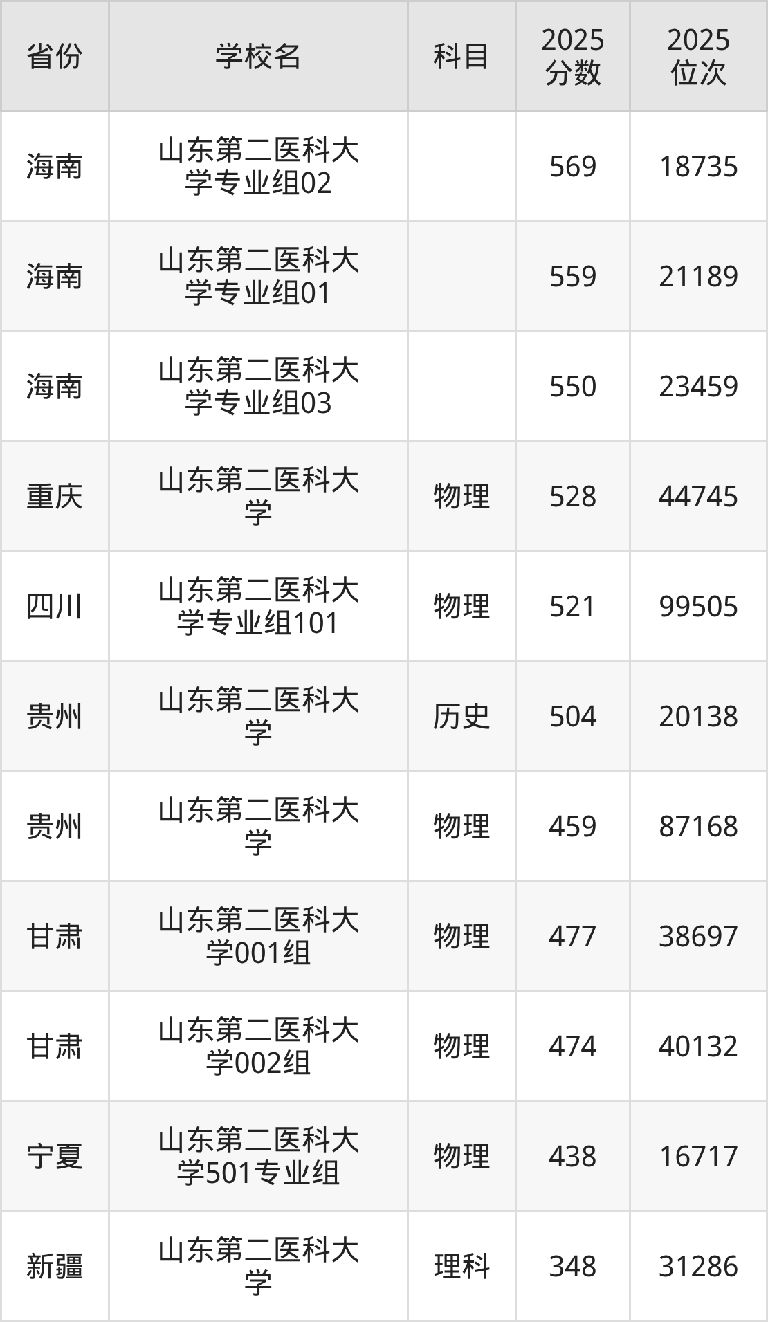 下面是山东第二医科大学2025年录取分数线各省汇总,一起来了解下吧。