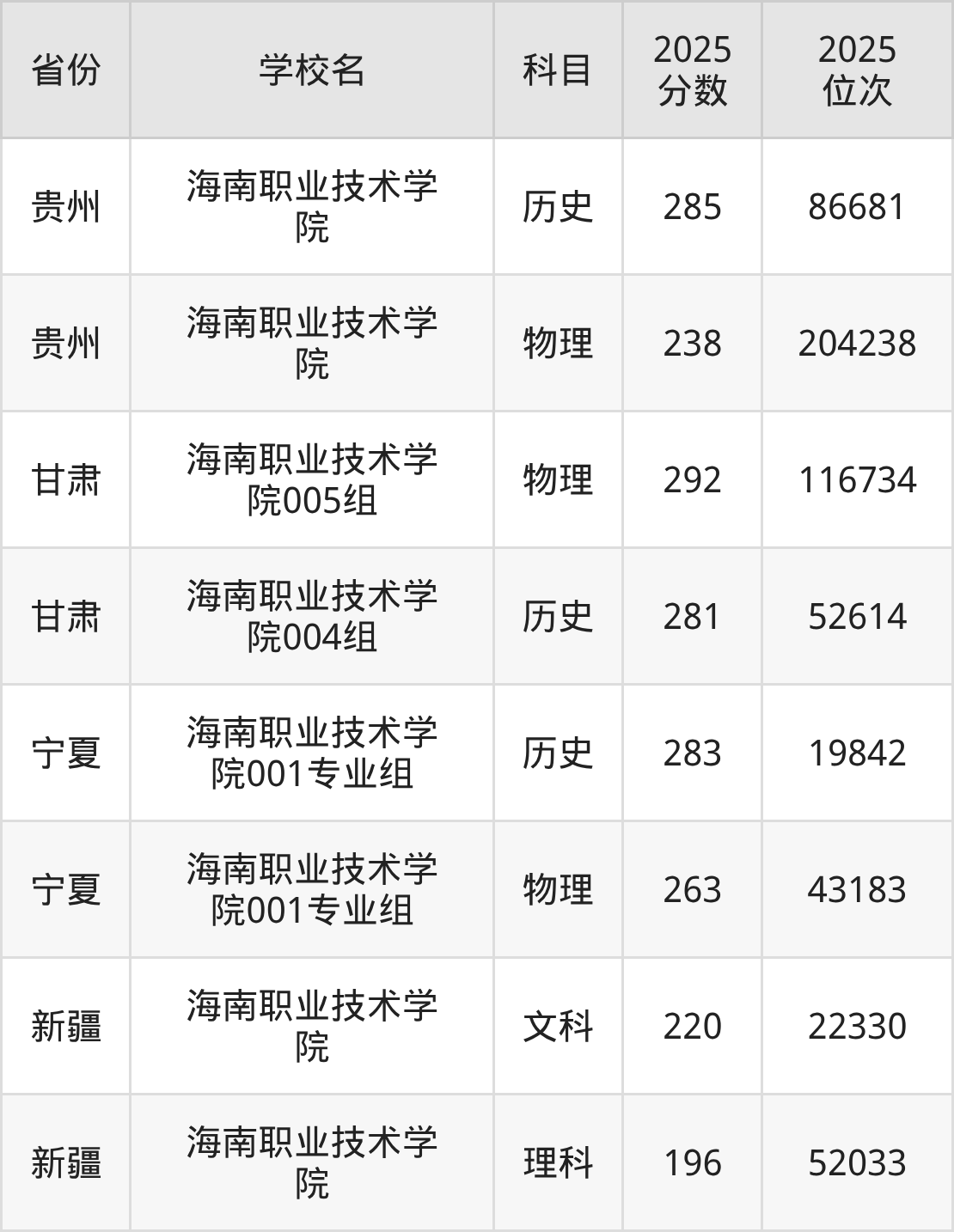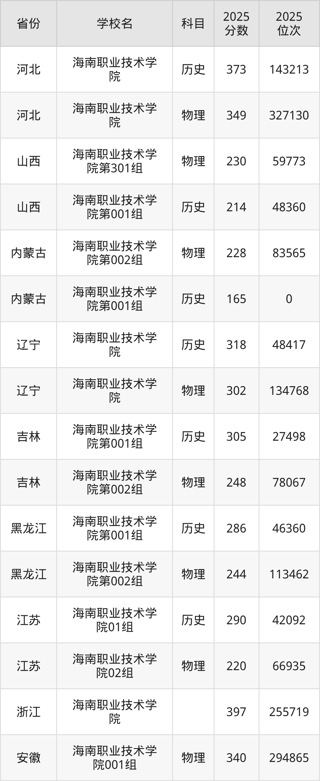 下面是海南职业技术学院2025年录取分数线各省汇总,一起来了解下吧。